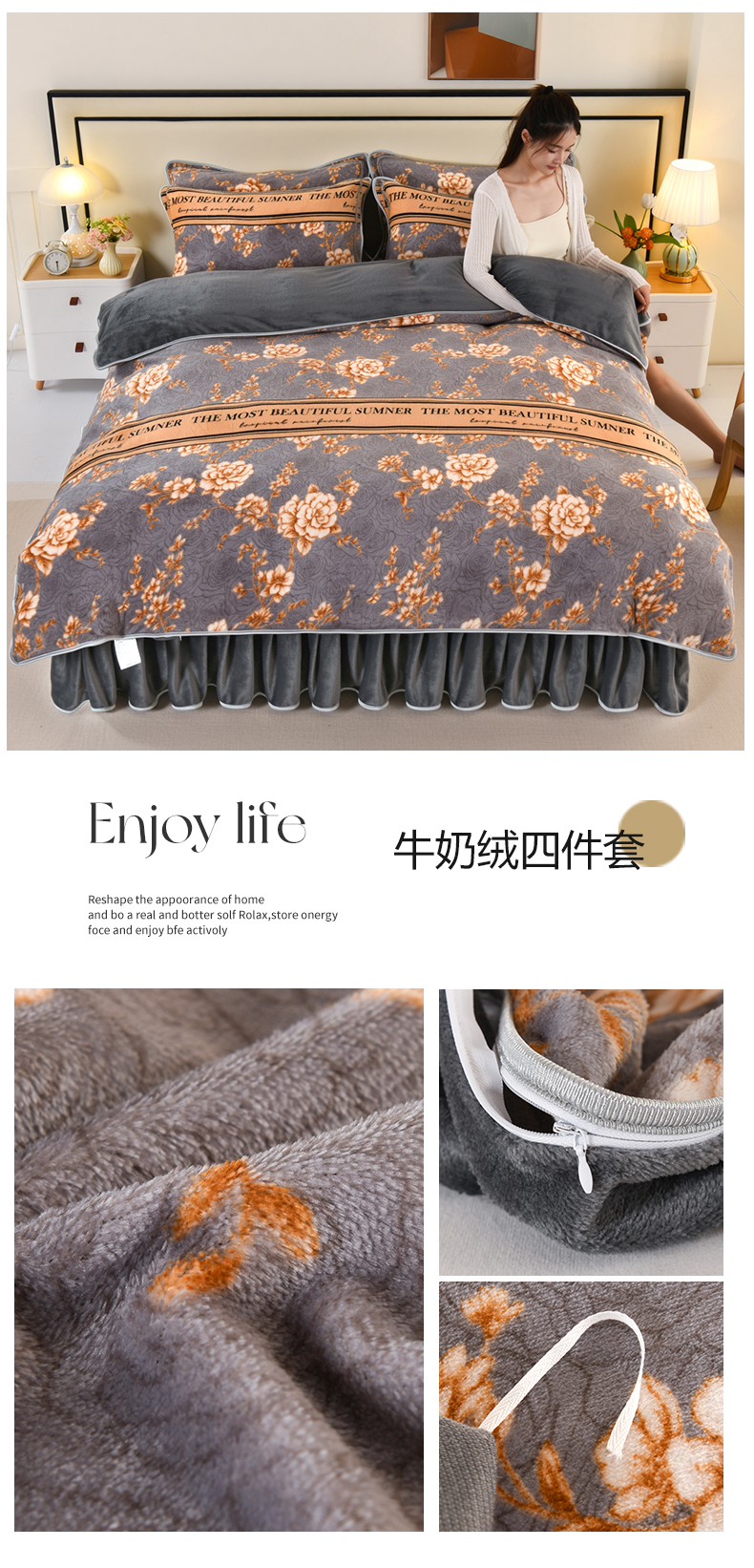商品名称:(总)绒品壹家 2025新款电商直播爆款高克重5斤牛奶绒金貂绒印花床裙款三件套四件套