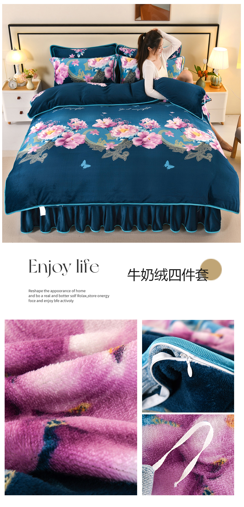 (总)绒品壹家家纺 2024新款5斤加厚金貂绒四件套,多姿多彩,钱兔似锦,星空森林,爱心结,粉恋,含苞待放,花都,花花绿绿,花好月圆,花满庭,黄金树,简约条格,蓝格子,莲鲤嬉戏,萌萌熊,牡丹花开,蒲公英,琪花玉树,棋盘格,荣华富贵,一见倾心 蓝,花开富贵,连鲤嘻戏