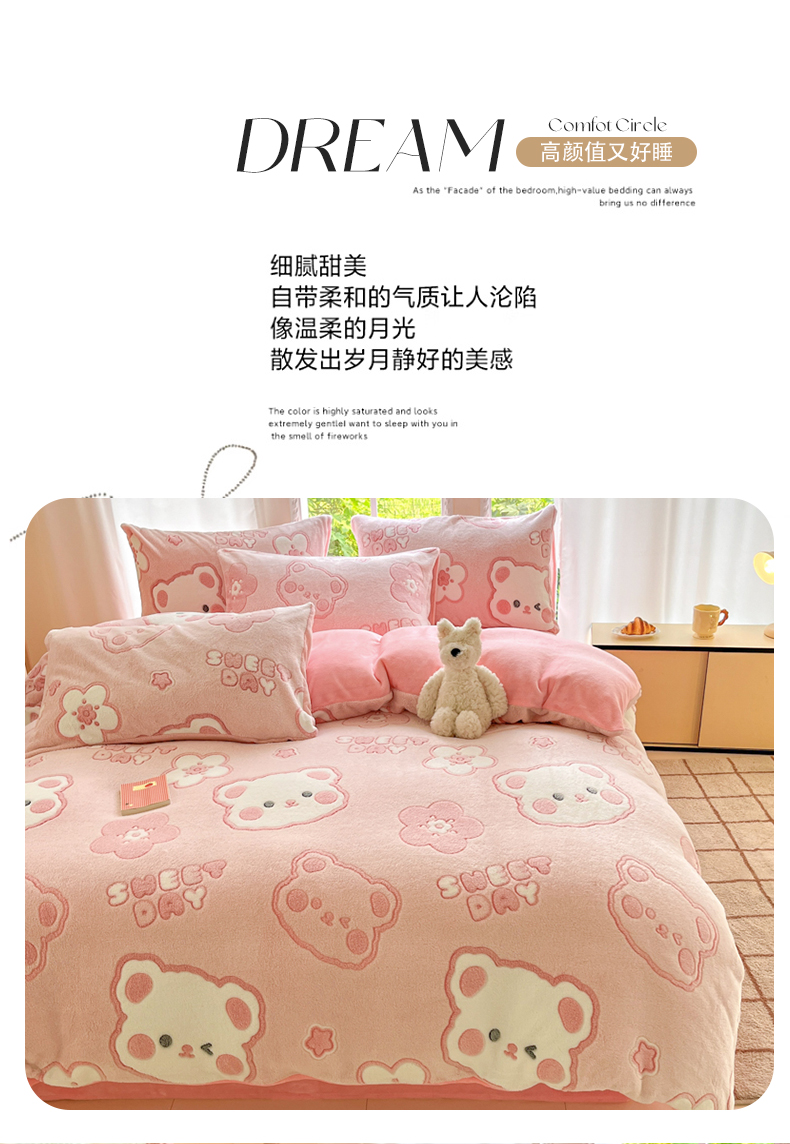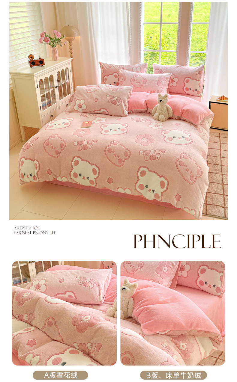 (总)娜朵家纺 2025新款双面加厚牛奶绒小清新印花四件套,奥利奥,彩虹兔,草莓佳人,橙子,宠物物语,粉色花海,花朵小兔,经典格,可萌,浪漫生活,少女日记,太空熊,甜蜜花园,五瓣花,小熊花园,芝芝桃桃