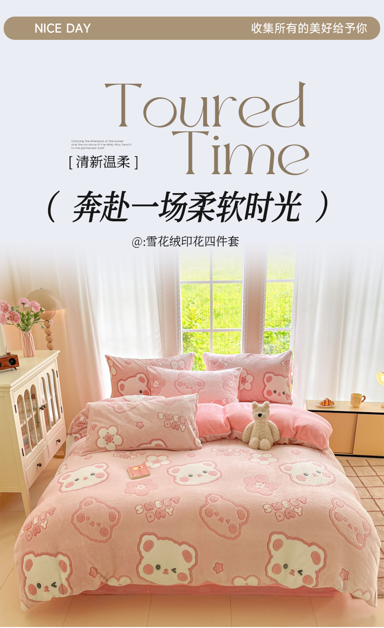 (总)娜朵家纺 2025新款雪花绒小清新印花四件套