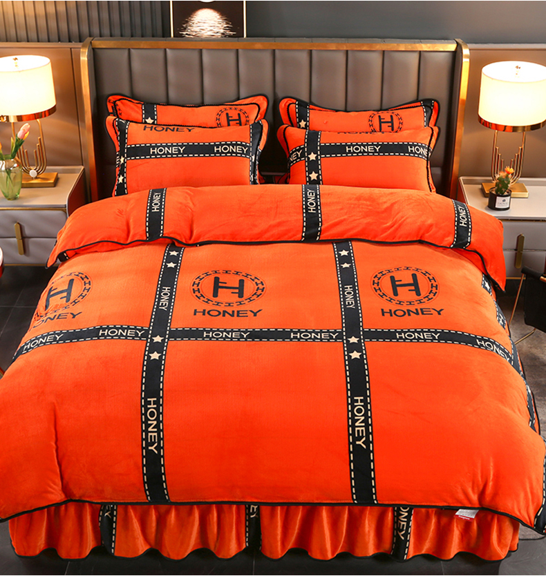 绒品壹家 2025新款电商直播爆款高克重7斤牛奶绒金貂绒印花床裙款三件套四件套 轻奢艾玛