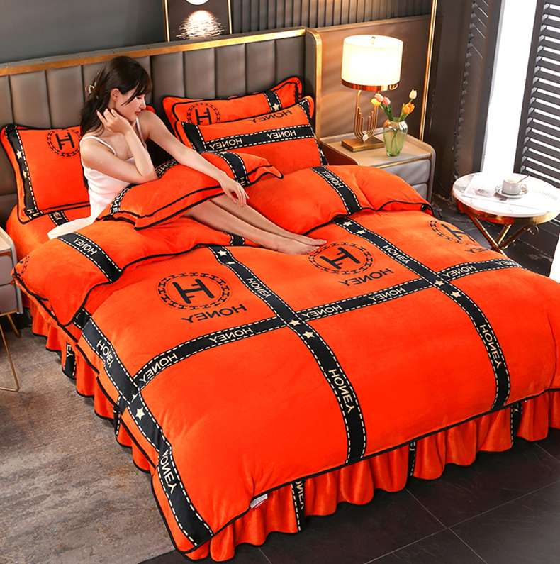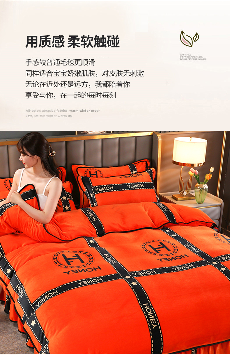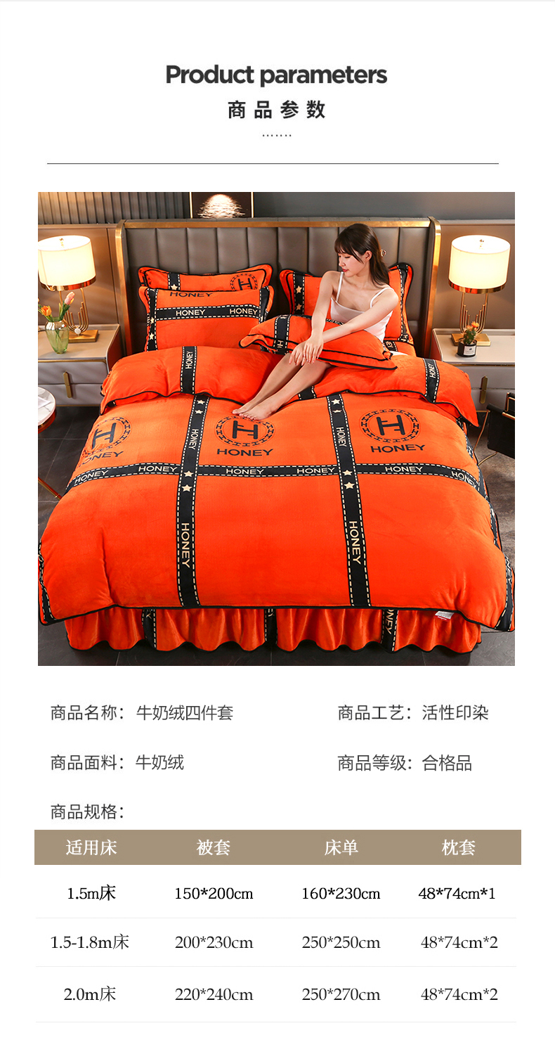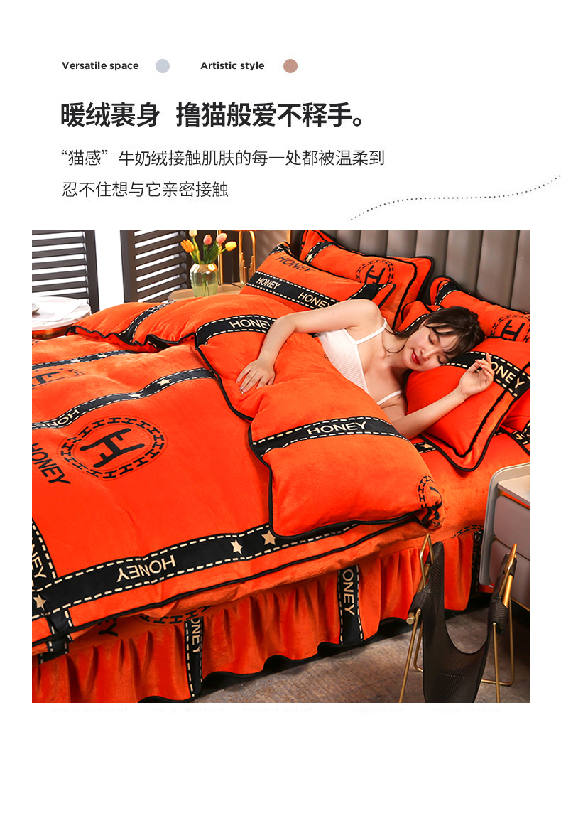 当前位置: 91家纺网 > 商品网购 > 床品套件 > 四件套 > 牛奶绒四件套 > 绒品壹家 2025新款电商直播爆款高克重7斤牛奶绒金貂绒印花床裙款三件套四件套 轻奢艾玛