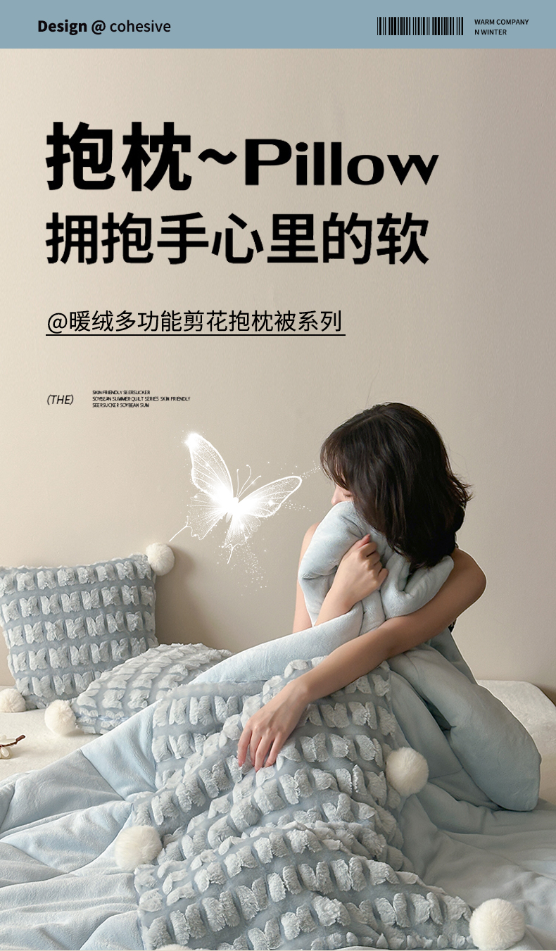 (总)多米家居 2025新款暖绒多功能剪花蝶梦抱枕被系列,福叠-蓝,福叠-粉,福叠-咖,福叠-奶白,组合
