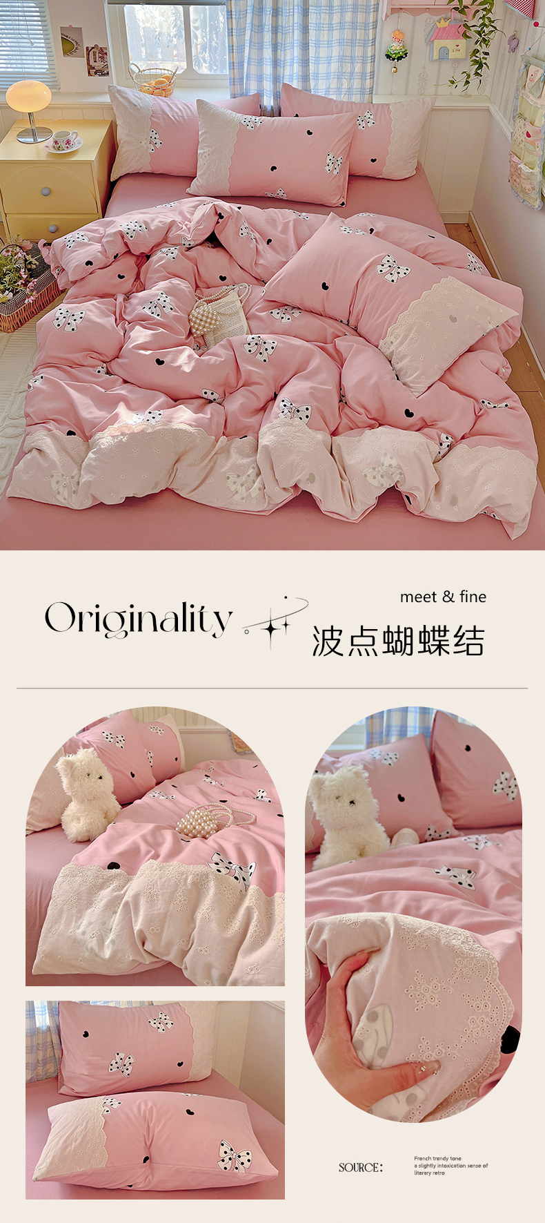 当前位置: 91家纺网 > 商品网购 > 床品套件 > 四件套 > 化纤活性四件套 > 港岛妹妹 2025新款韩式蕾丝花边软绵绵四件套 波点蝴蝶结