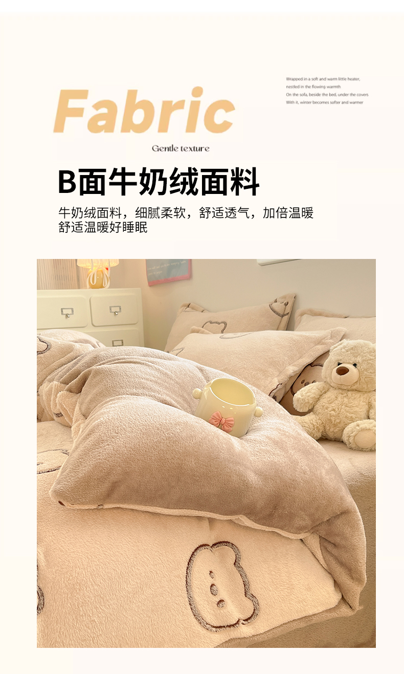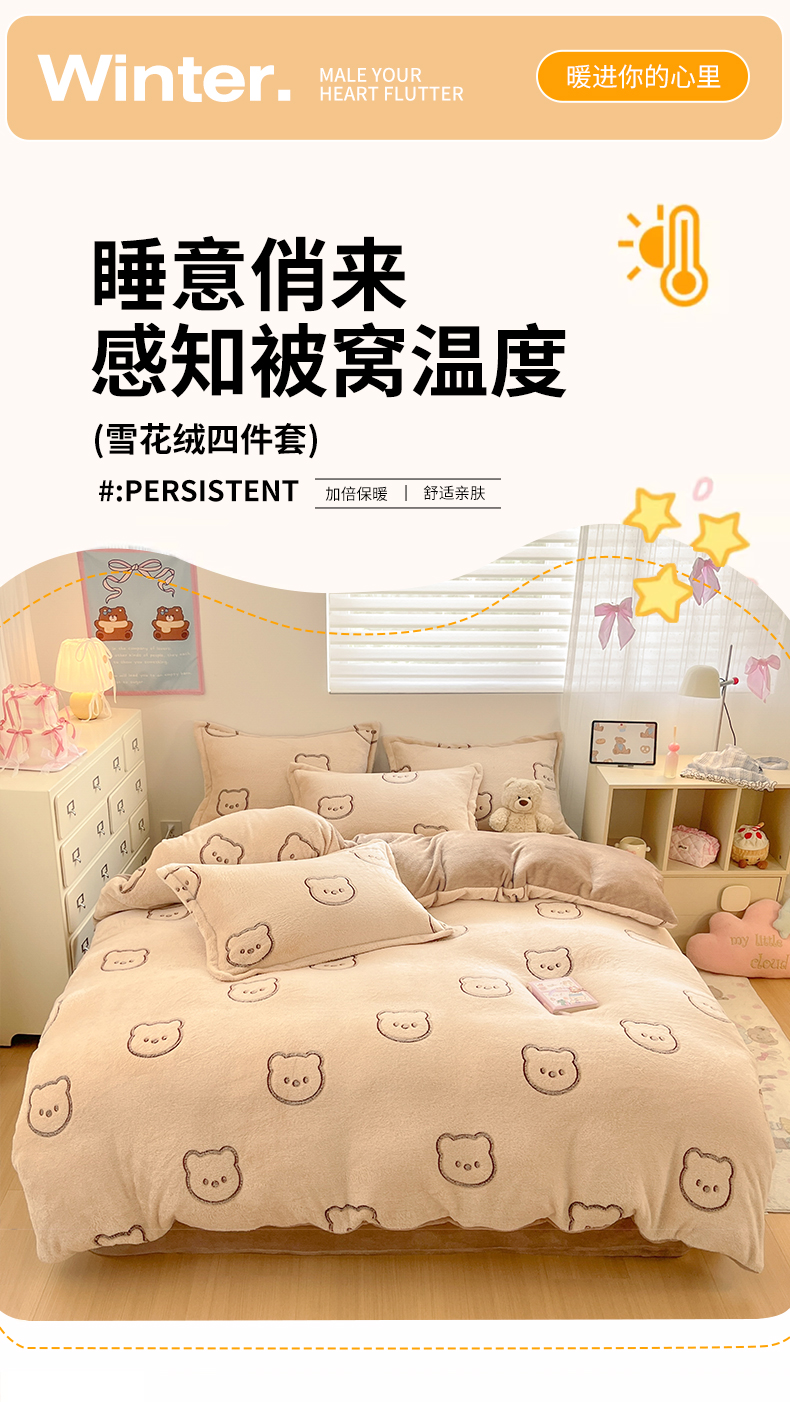 当前位置: 91家纺网 > 商品网购 > 床品套件 > 四件套 > 其它四件套 > 川悦生活 2025新款立体雪花绒印花大床四件套系列二场景一 曲奇小熊