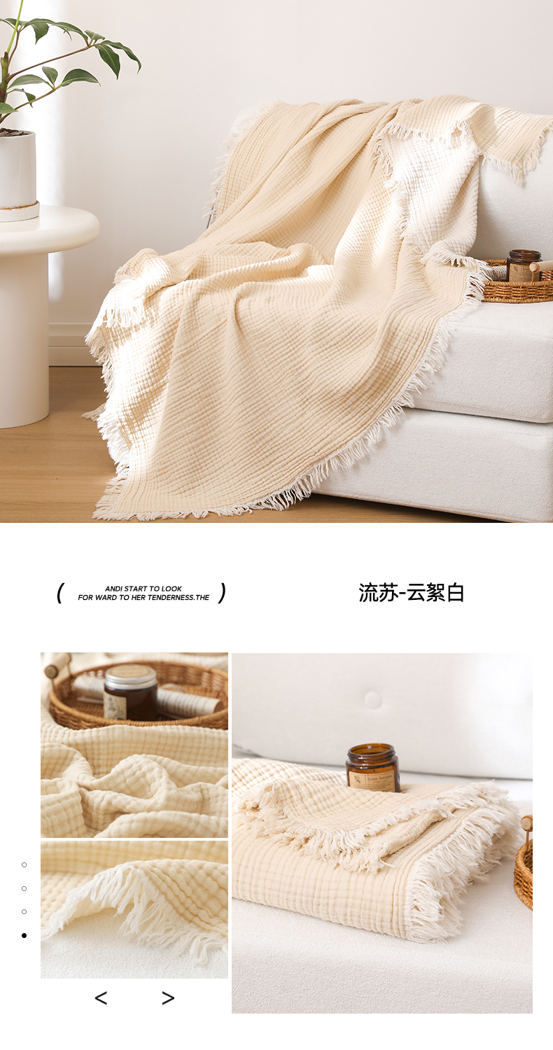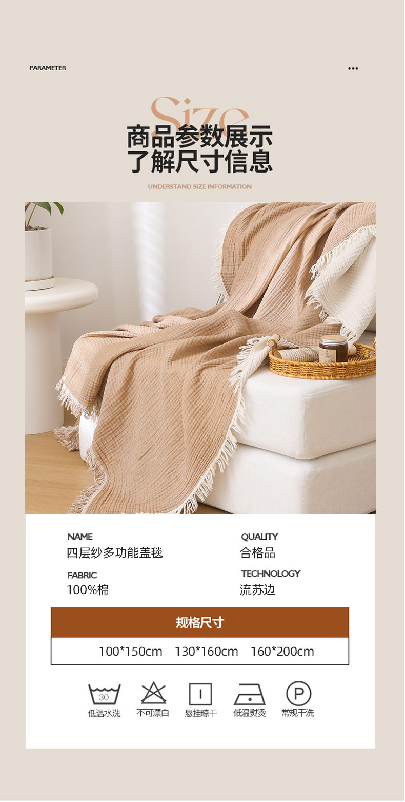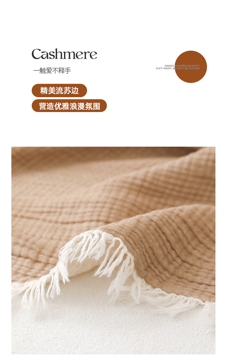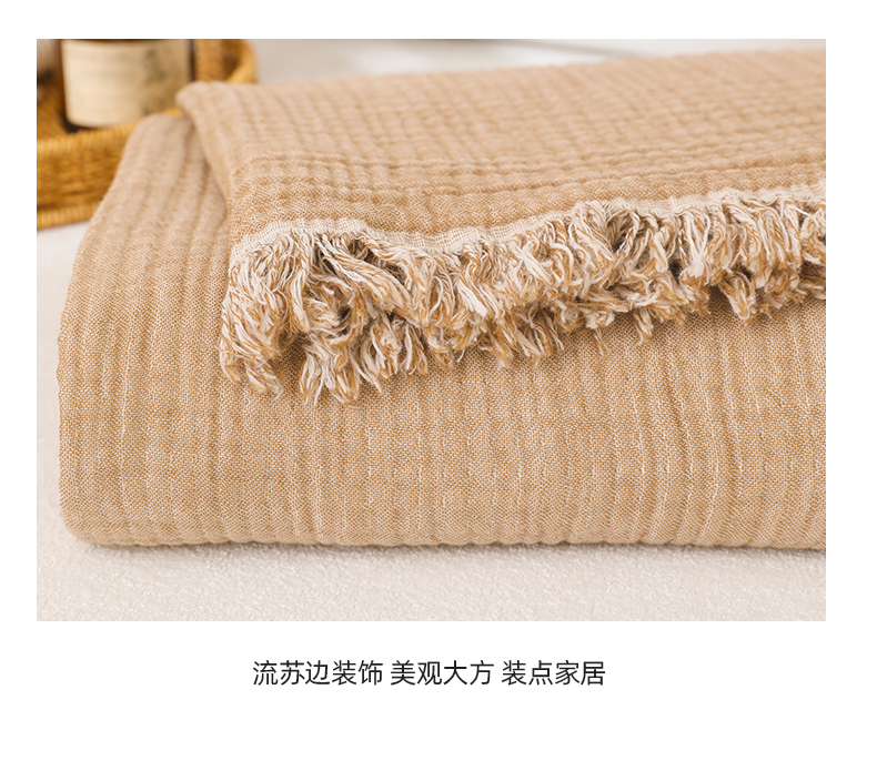 商品名称:简宜家居(朝初家纺) 2025新款全棉100%棉四层纱流苏边毛毯子 流苏-焦糖褐