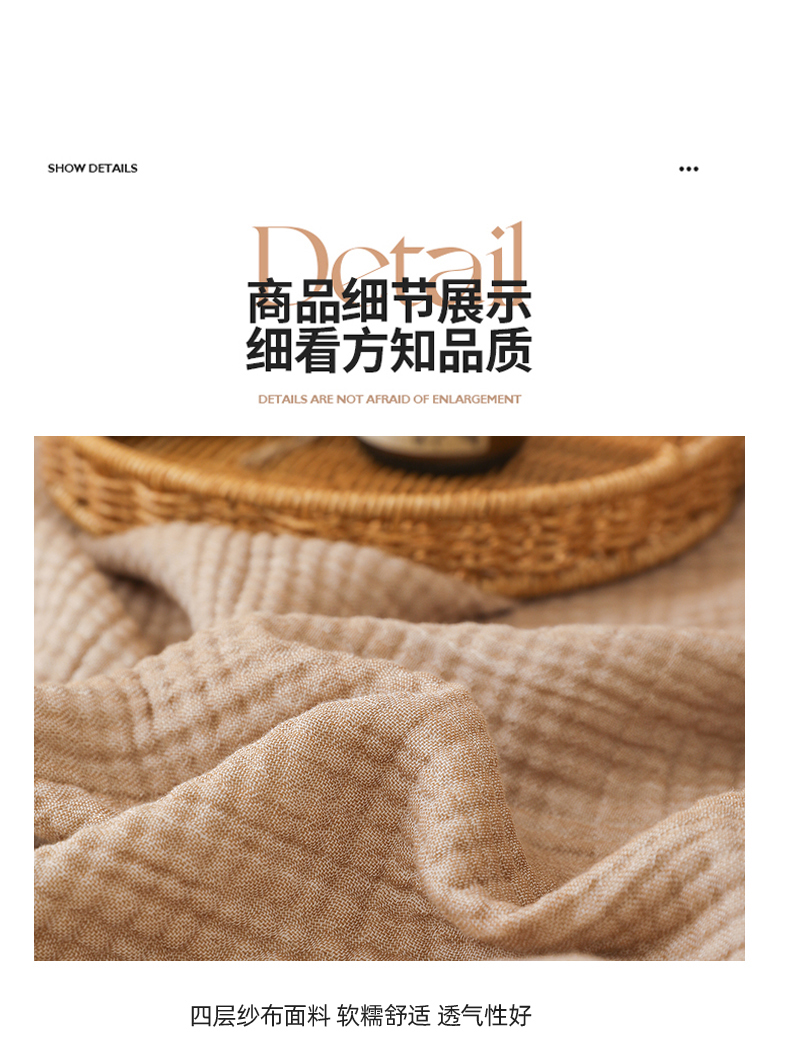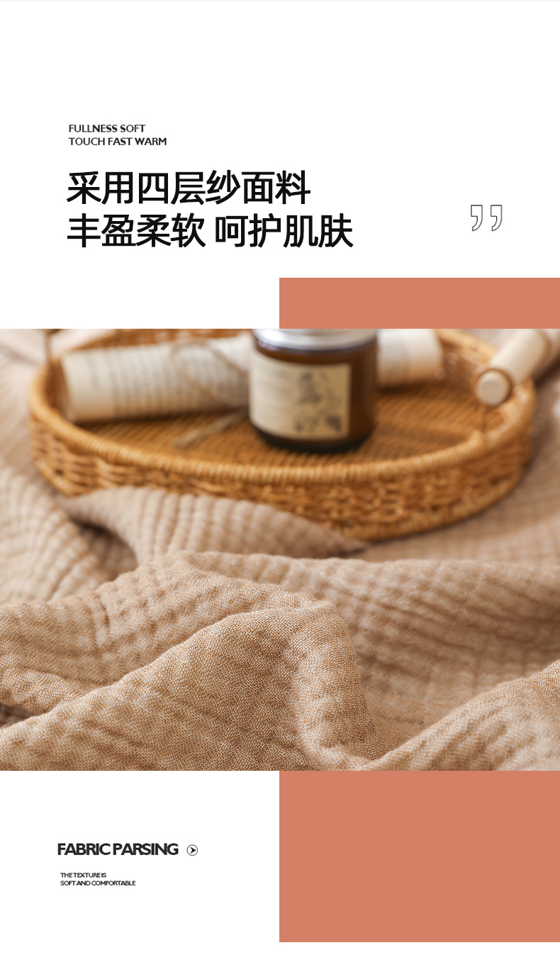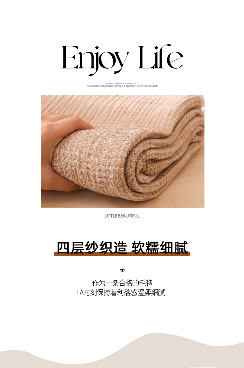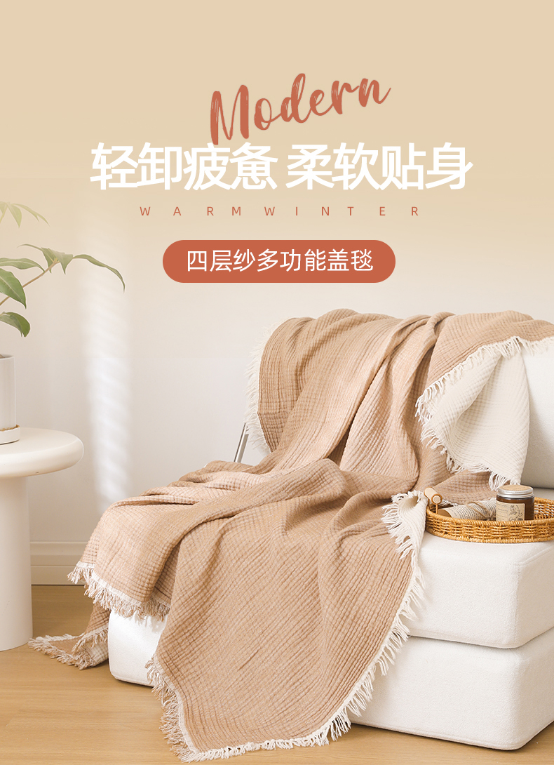 商品名称:简宜家居(朝初家纺) 2025新款全棉100%棉四层纱流苏边毛毯子 流苏-焦糖褐