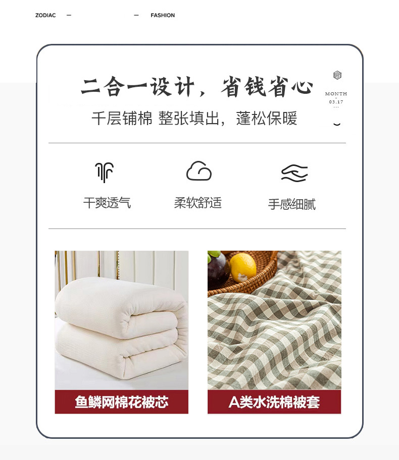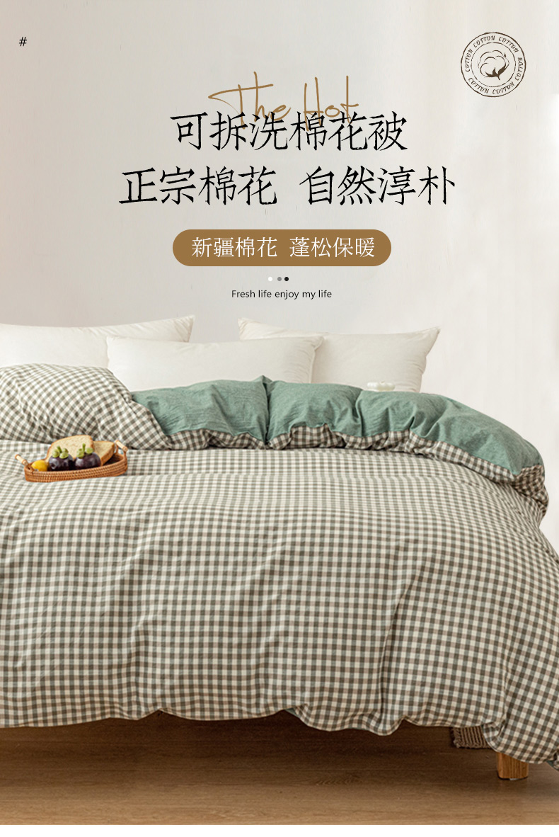 • 91家纺网 家纺一手货源 找家纺 悠米悠家 2025新款蓬松保暖可拆洗新疆棉花被子被芯 绿小格
