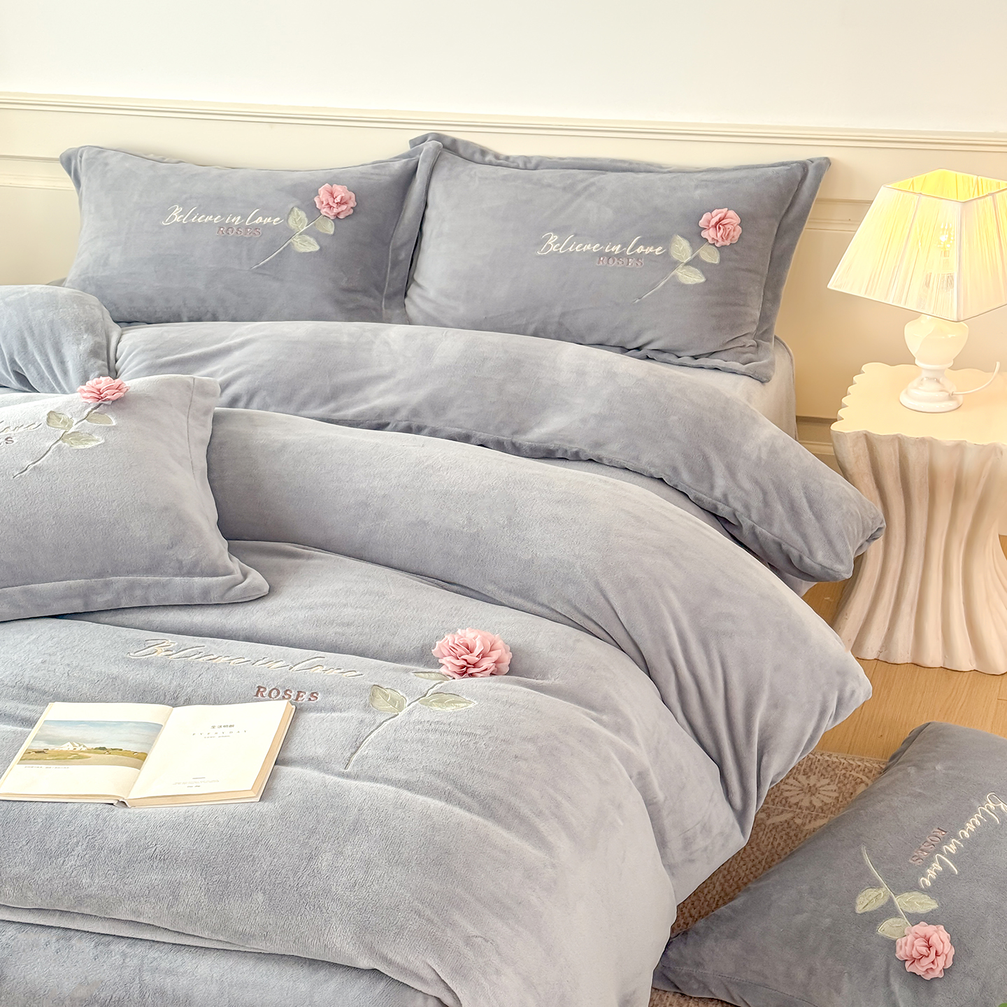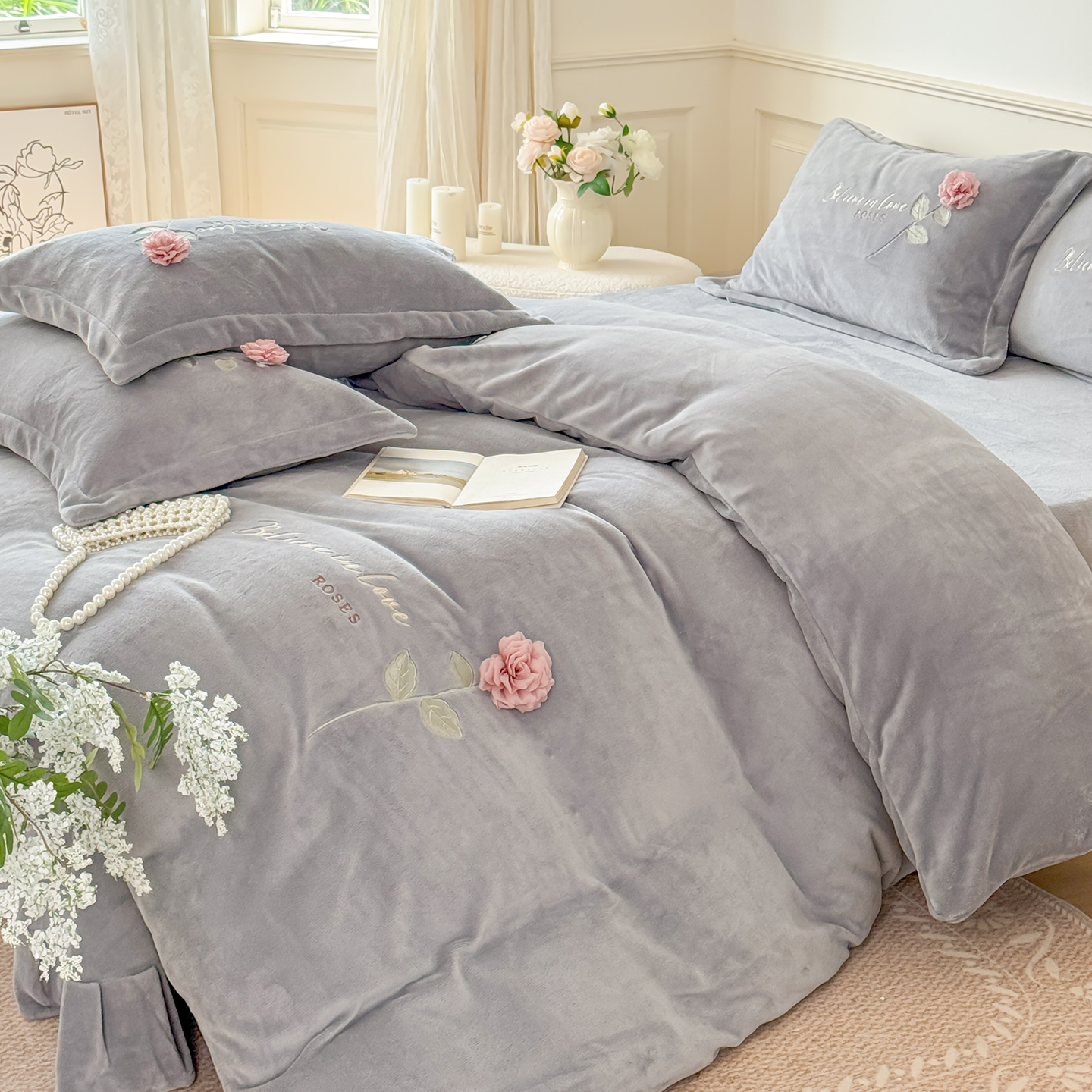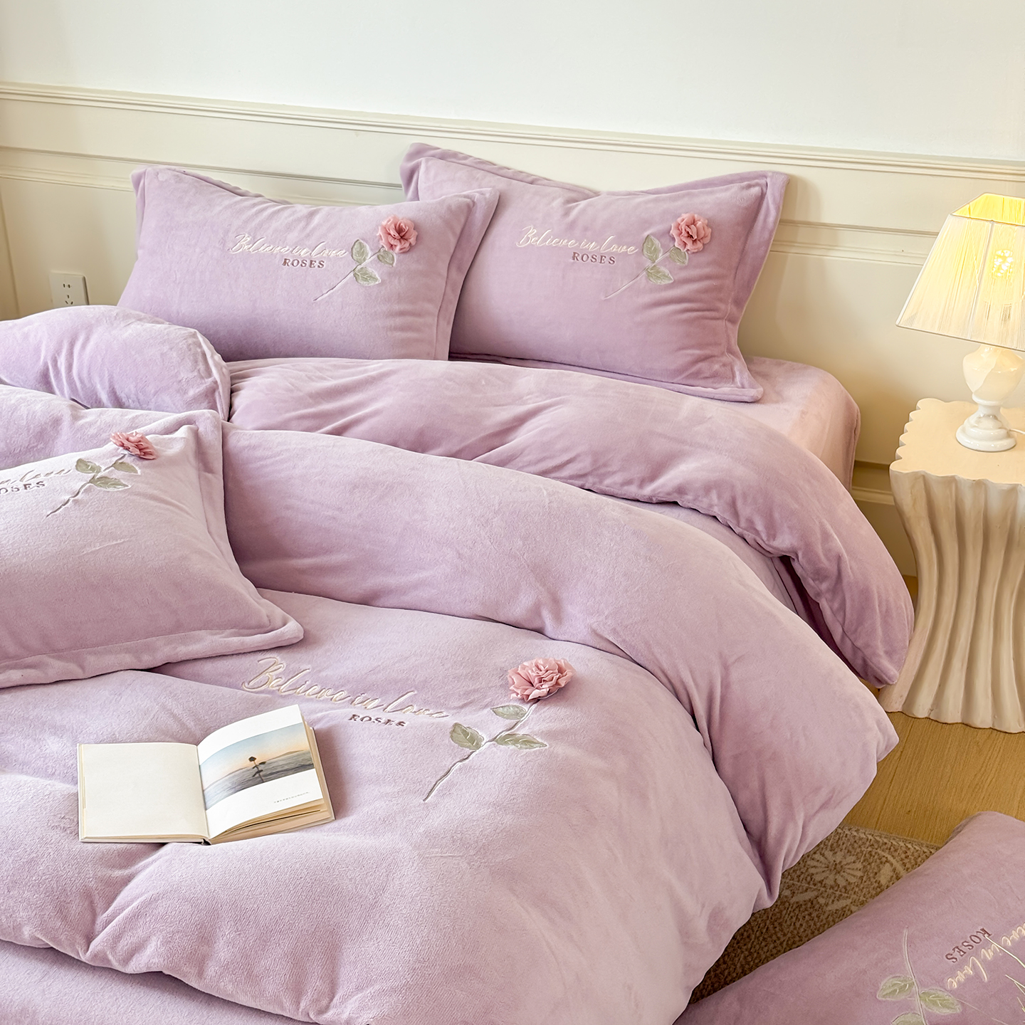 (总)恋尚羽家纺 2025秋冬热款刺绣牛奶绒四件套-郁金香,郁金香-豆沙,郁金香-粉玉,郁金香-灰色,郁金香-紫色