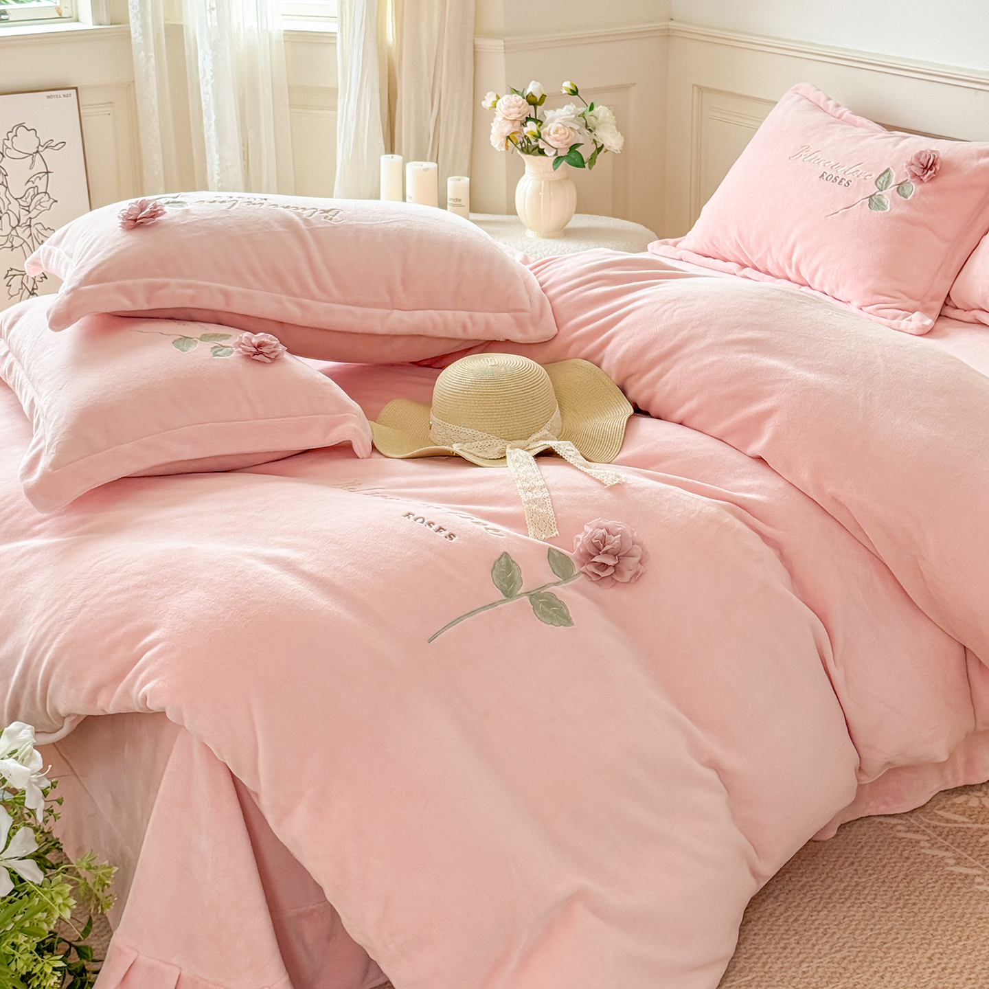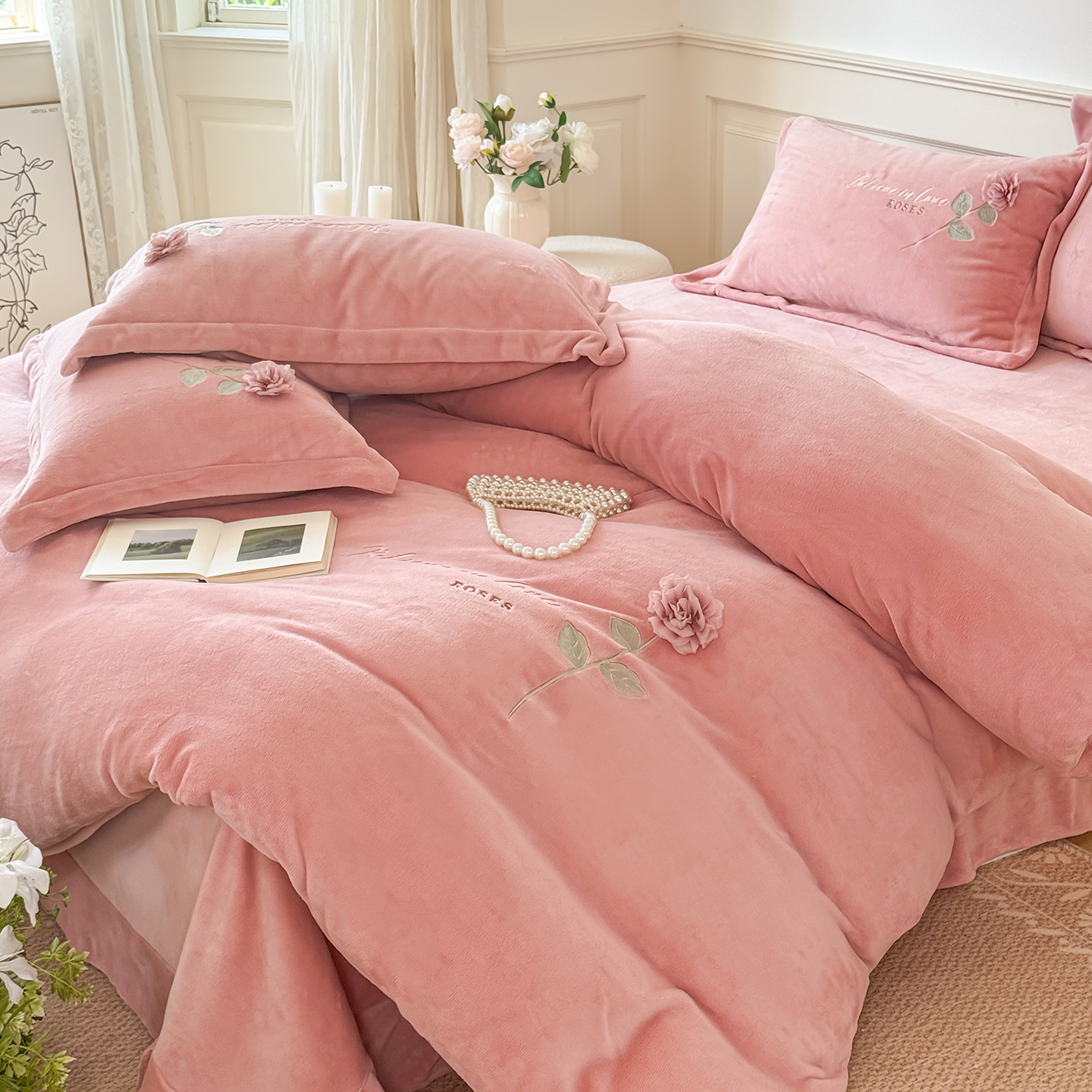 (总)恋尚羽家纺 2025新款公主绒全消光牛奶绒高克重加厚绣花婚庆款四件套-花好月圆,花好月圆