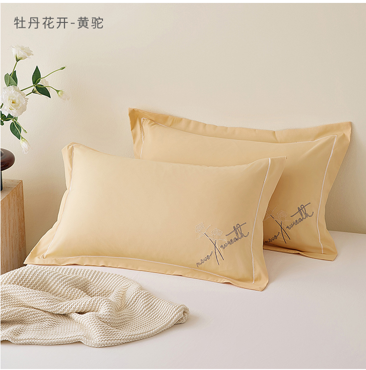 商品名称:丰淘家纺 2025新款60水洗棉精美刺绣枕套-牡丹花开 牡丹花开-米黄