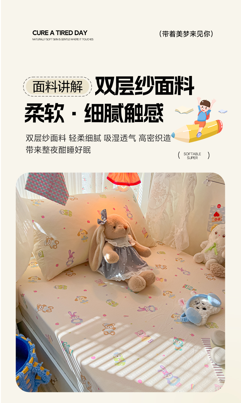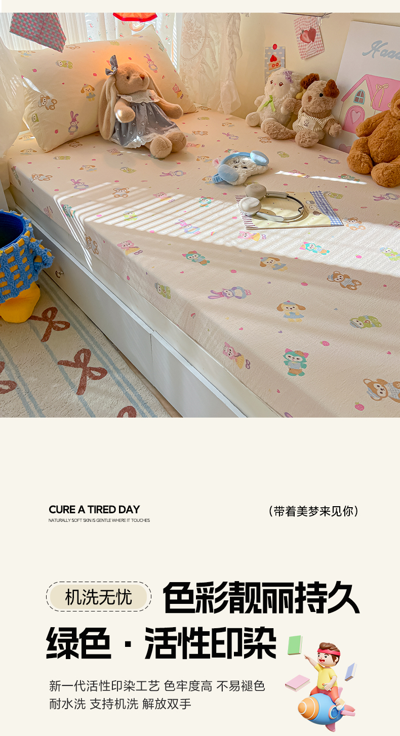 • 91家纺网 家纺一手货源 找家纺 韩巢家纺 2025新款A类学生宿舍上下铺床笠单件床垫保护罩枕套三件套 七宝
