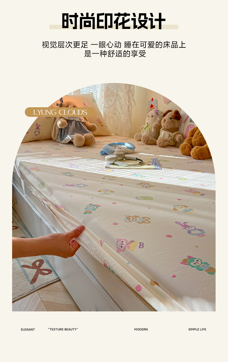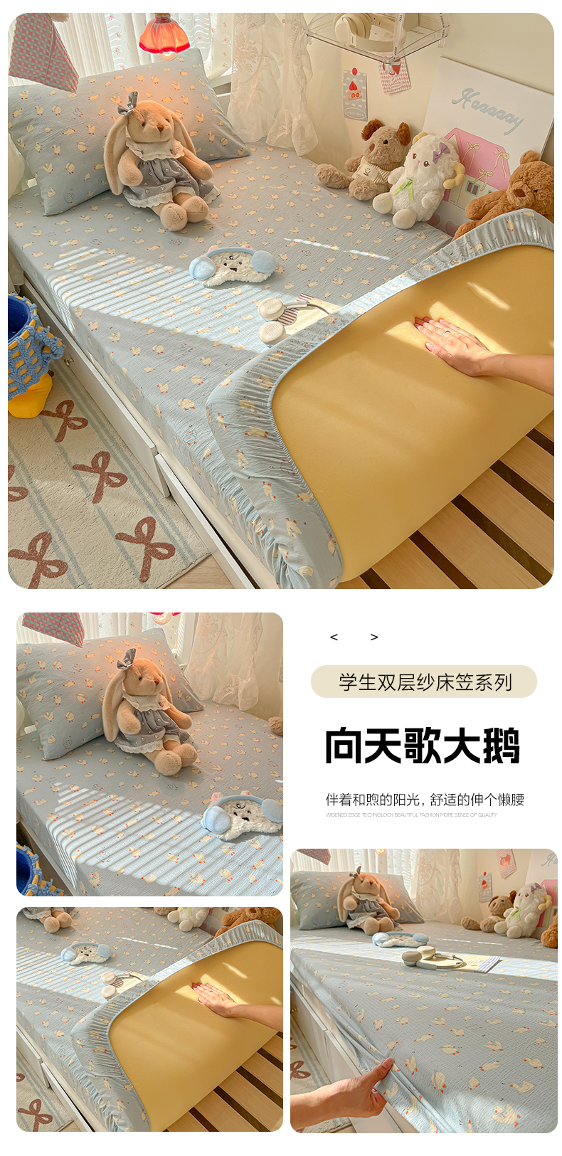 韩巢家纺 2025新款A类学生宿舍上下铺床笠单件床垫保护罩枕套三件套 七宝
