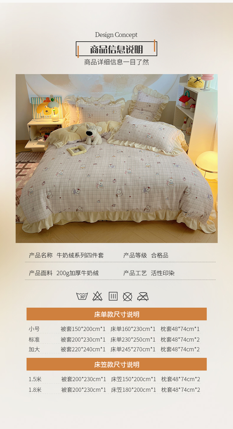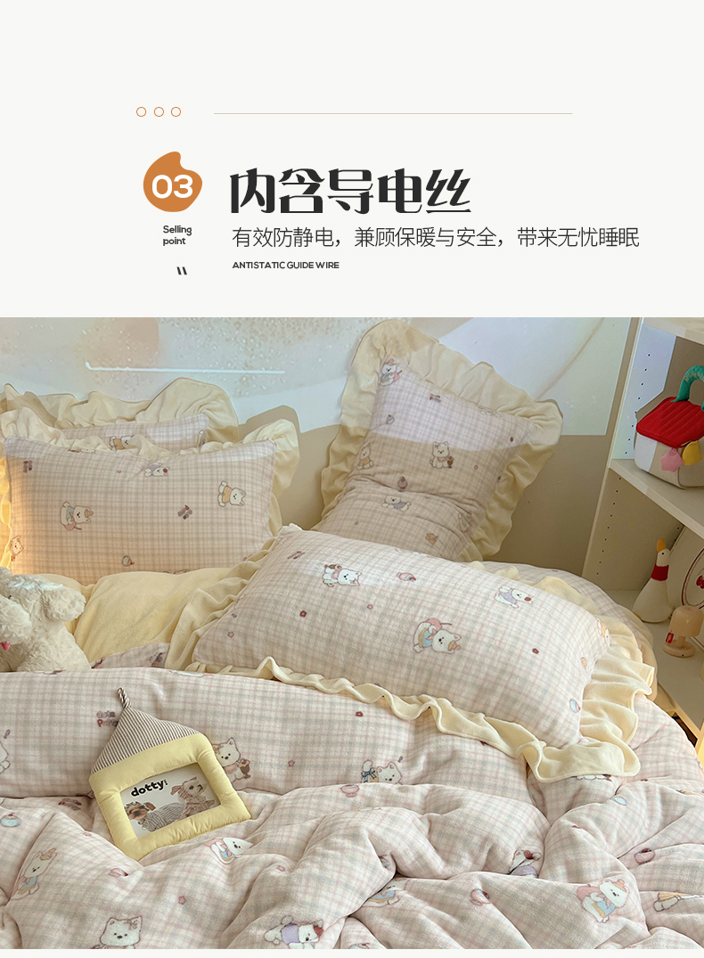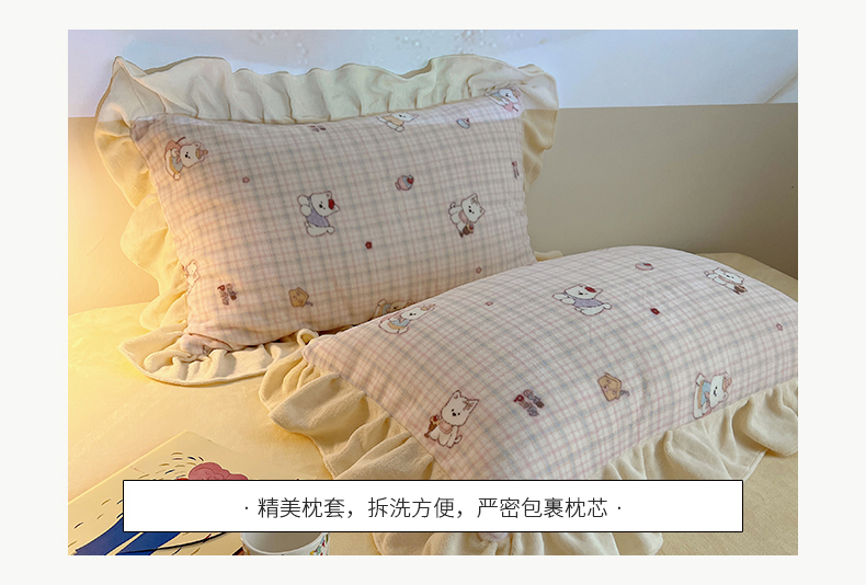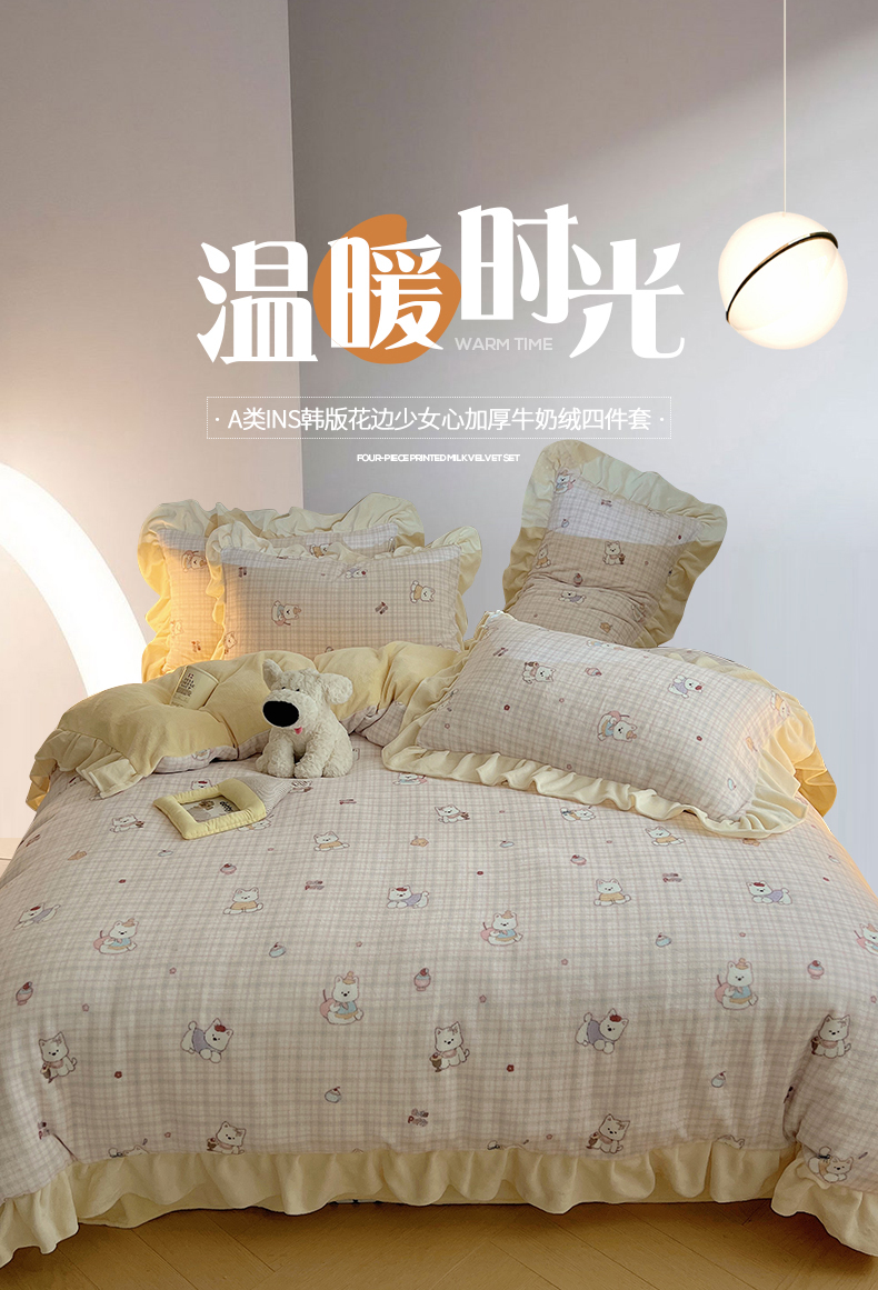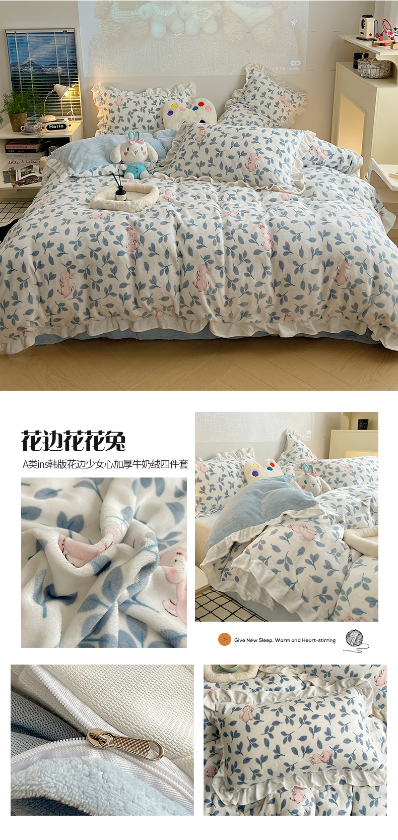 商品名称:(总)桃子家居 2025新款A类ins韩版花边少女心可爱卡通碎花加厚牛奶绒四件套