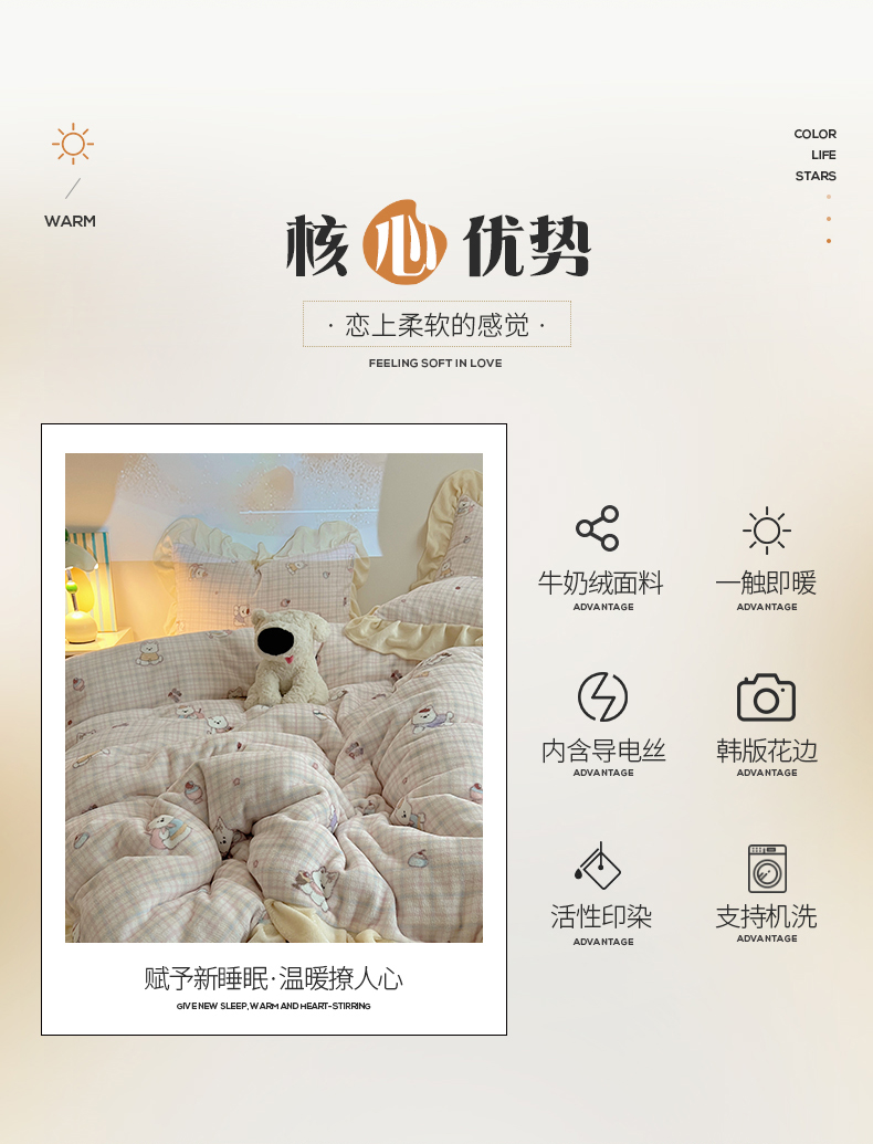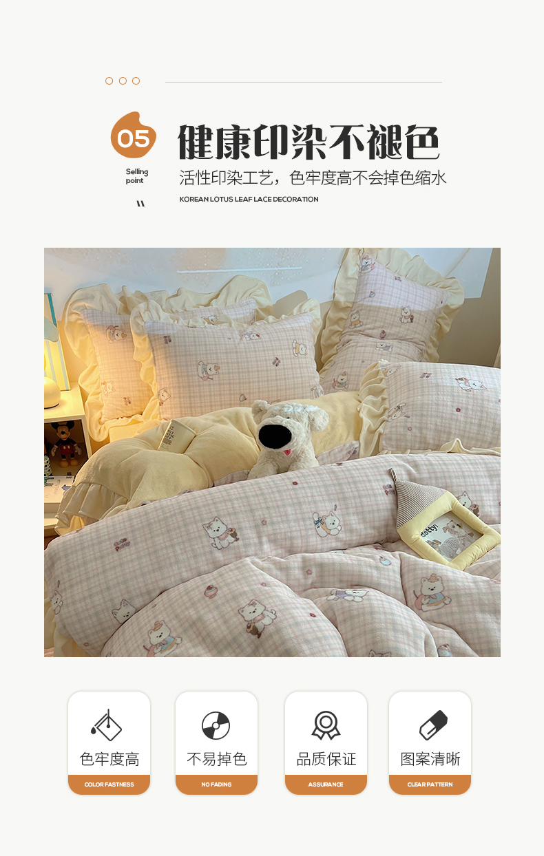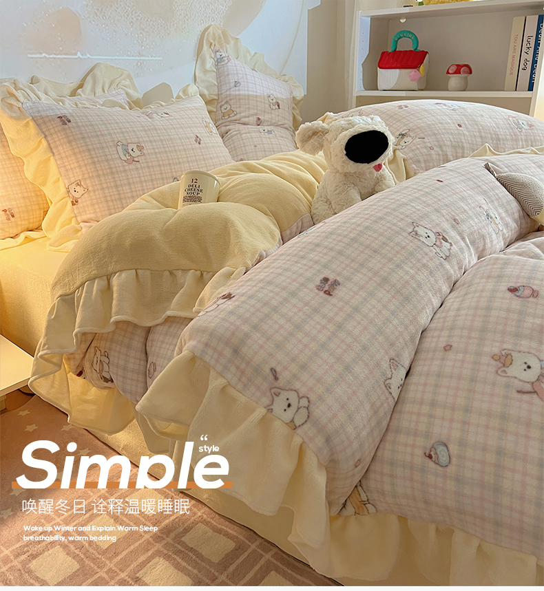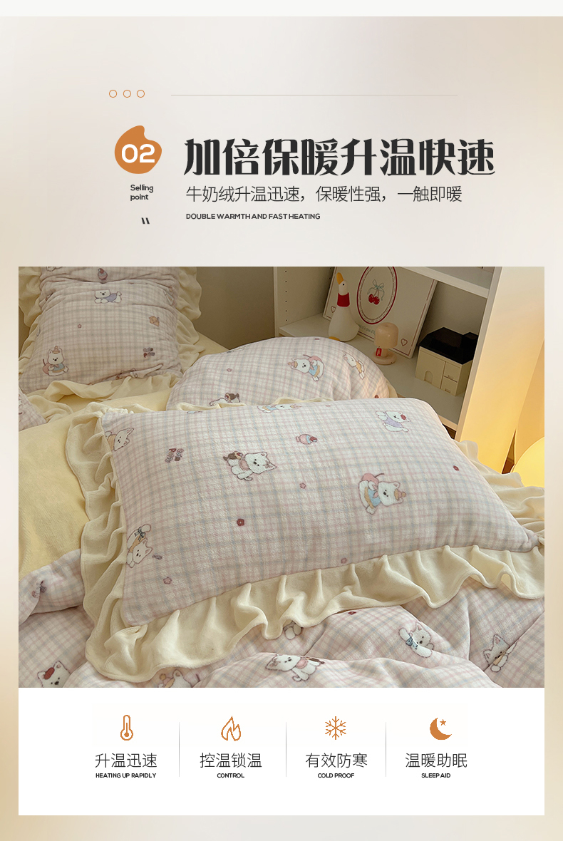 商品名称:(总)桃子家居 2025新款A类ins韩版花边少女心可爱卡通碎花加厚牛奶绒四件套
