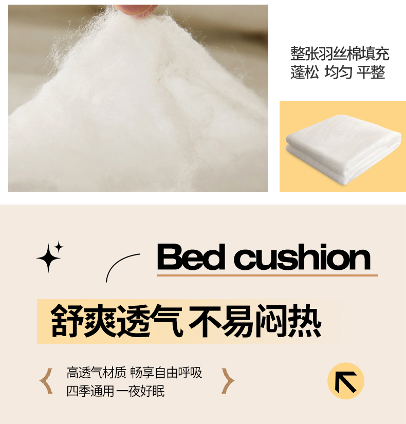 莱家富 2025新款A类柔感彩绒棉夹棉床垫三件套单床垫-菱影蔓花系列 菱影蔓花-沙砾米床垫