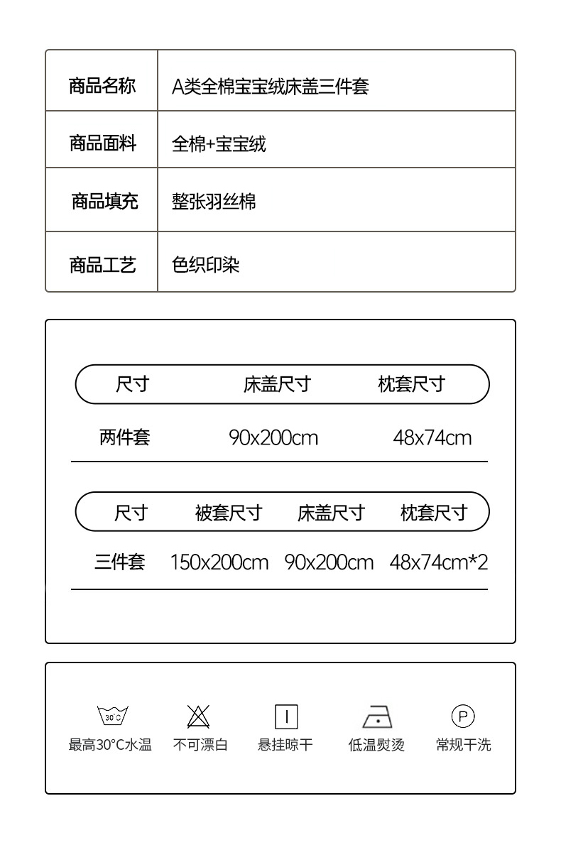 • 91家纺网 家纺一手货源 找家纺 乐野家居 2025新款开学季 A类全棉水洗棉+宝宝绒学生床盖三件套(多功能被套) 豆沙小格