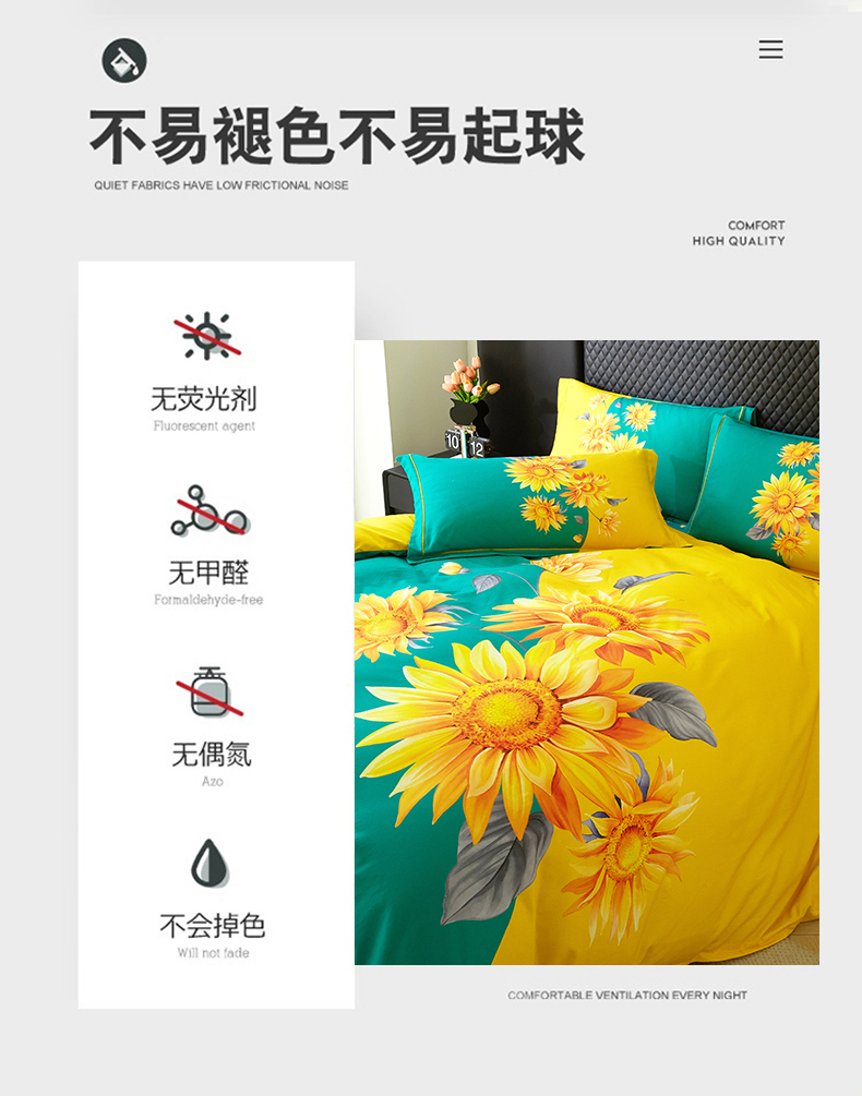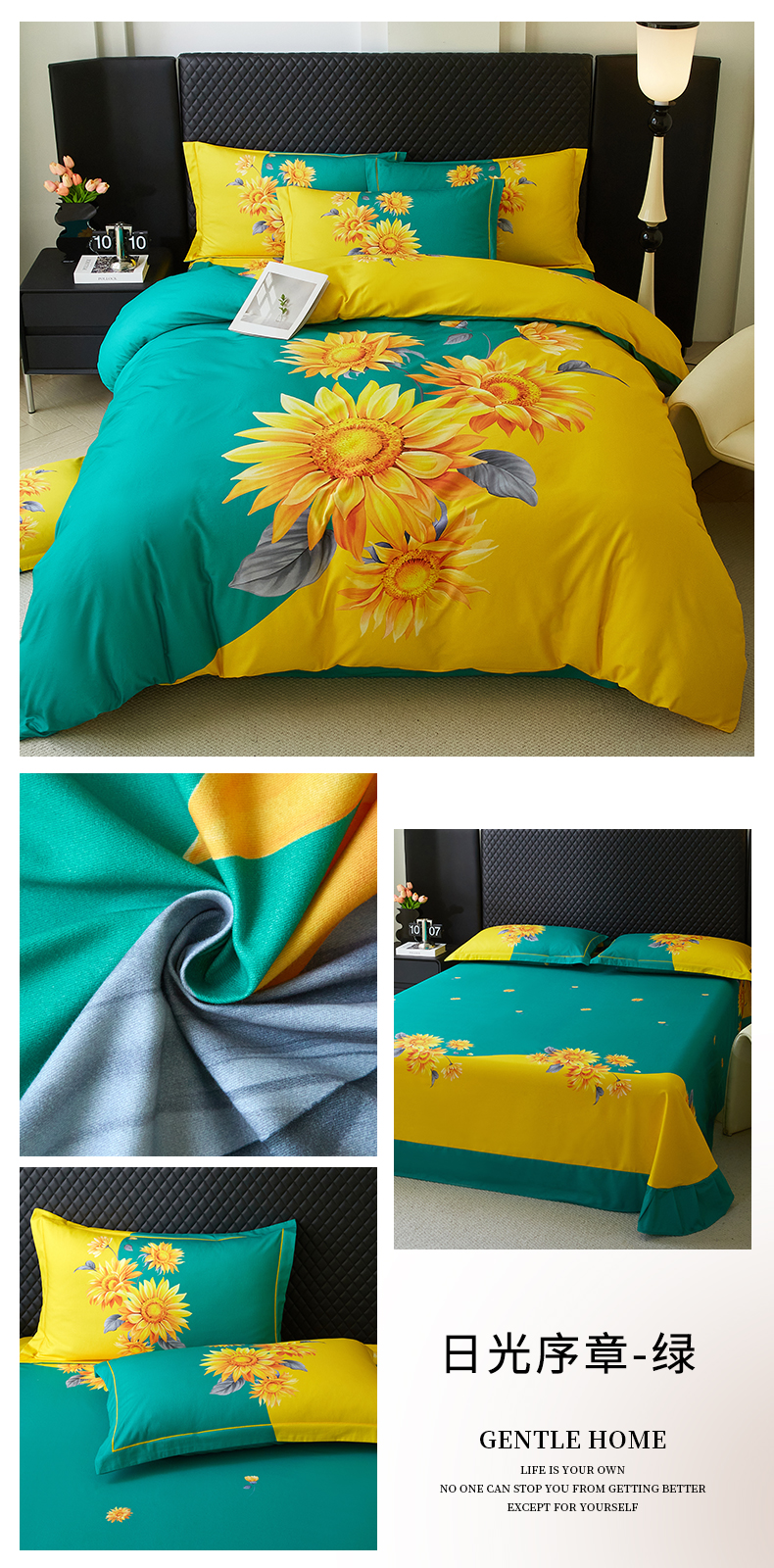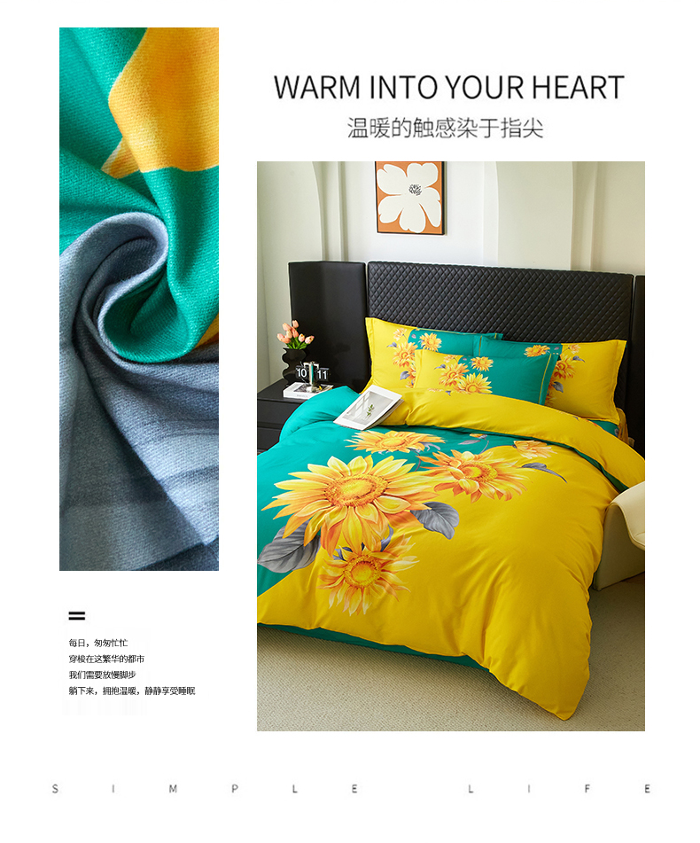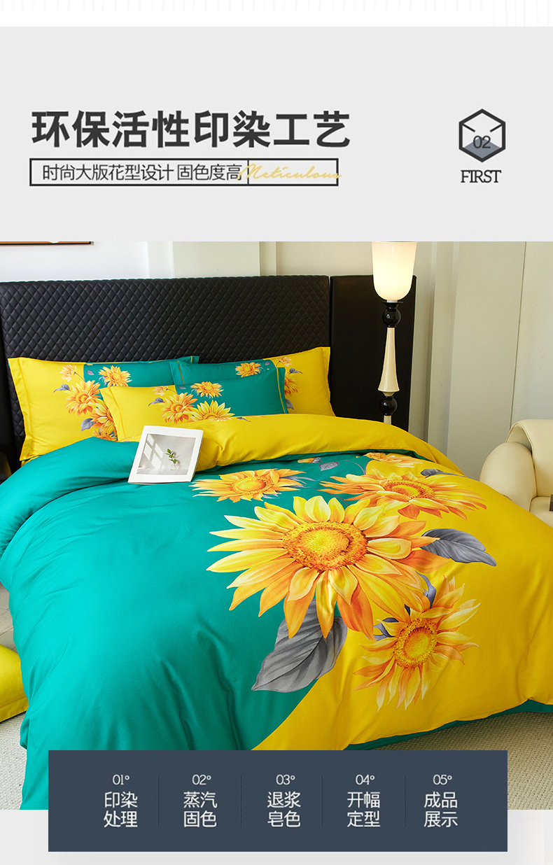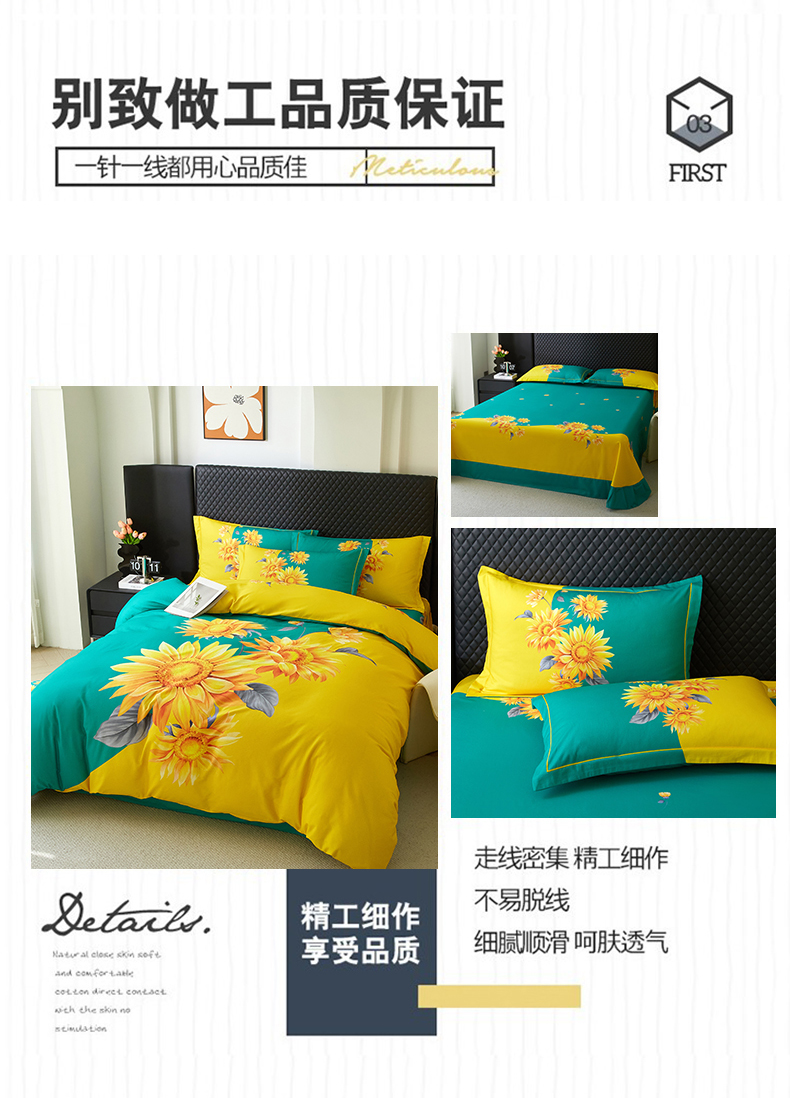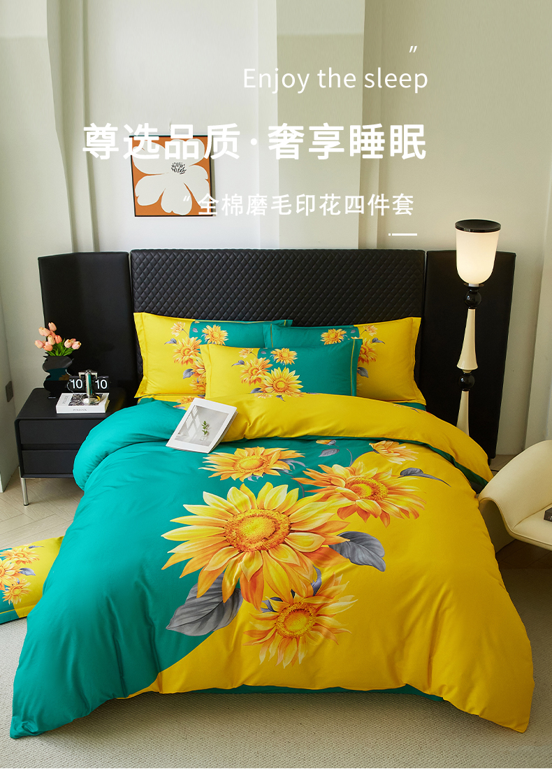 金纱玉纺 2025年新款秋冬全棉印花四件套 日光序章-绿