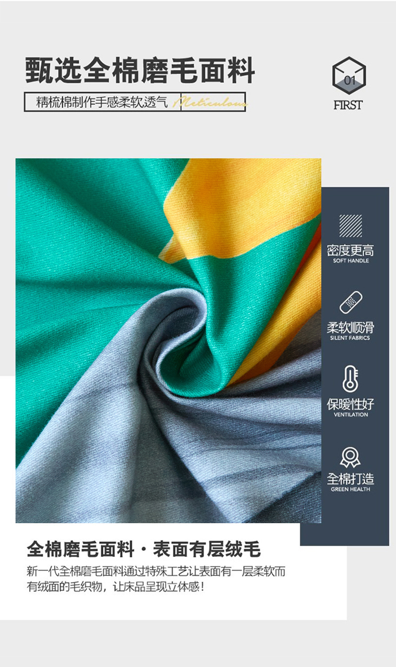 商品名称:金纱玉纺 2025年新款秋冬全棉印花四件套 日光序章-绿