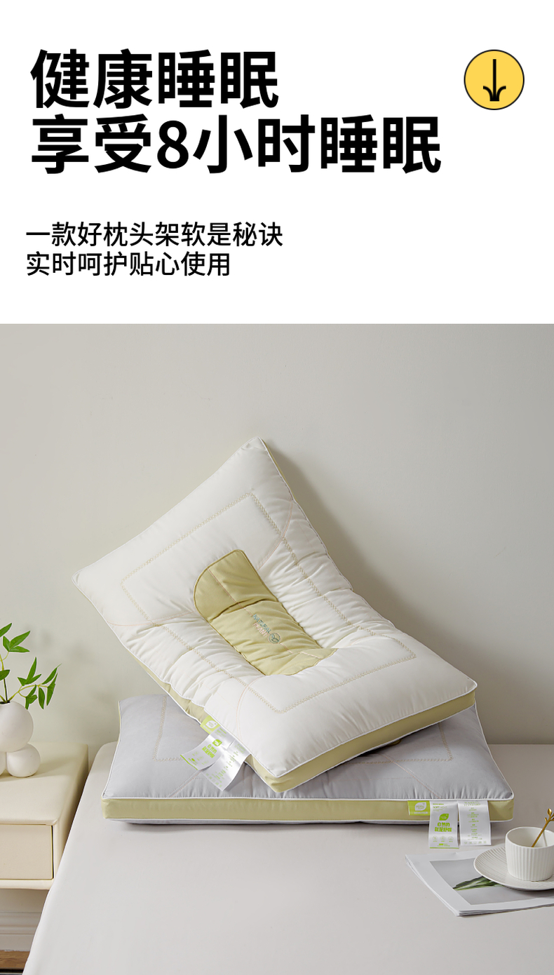当前位置: 91家纺网 > 商品网购 > 枕头/枕芯/保健枕/颈椎枕 > 枕头枕芯 > 晚儿 2025春夏新款自然养眠护颈枕枕头枕芯 组合图仅供展示不可下单