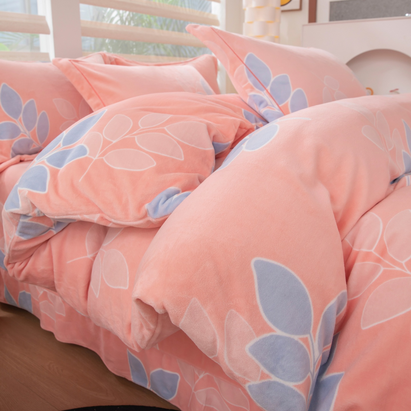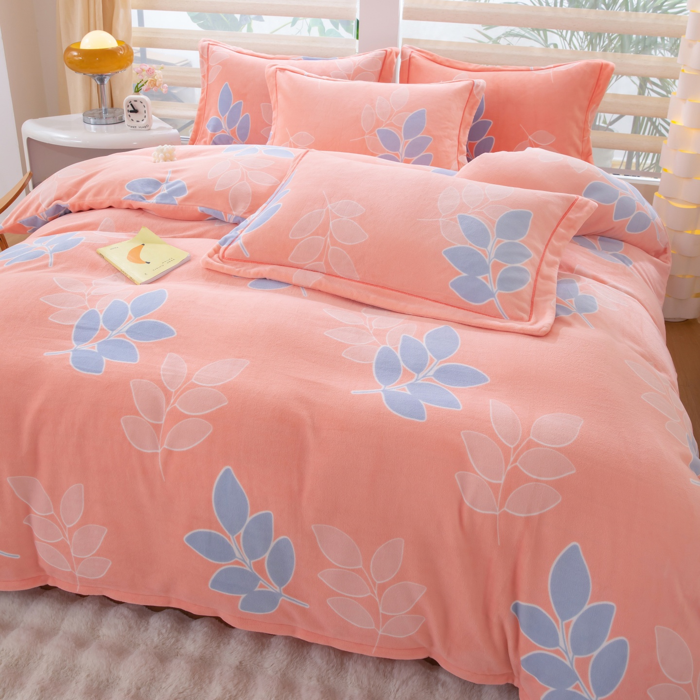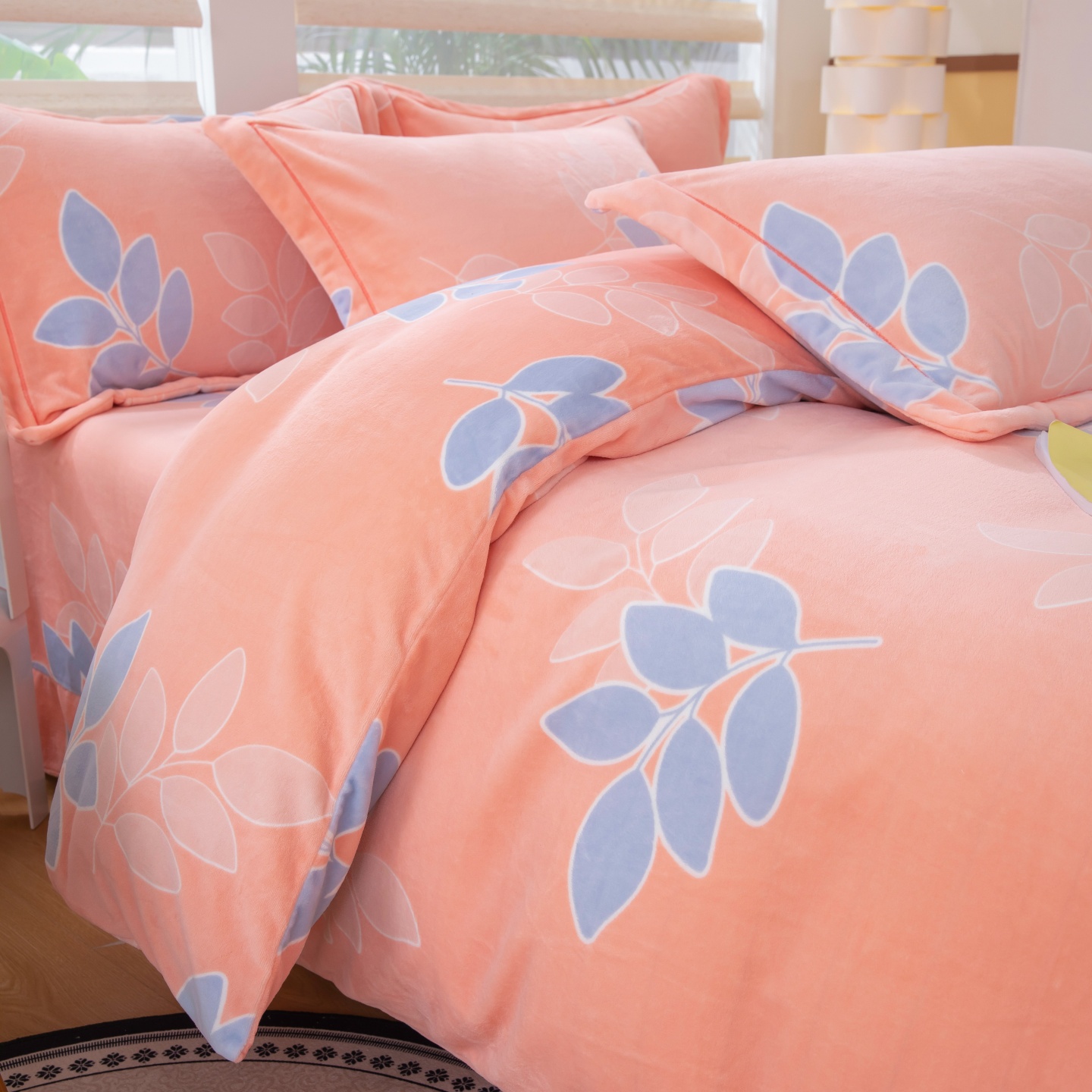 商品名称:优姿家纺 2025新款加厚全消光牛奶绒印花四件套 叶叶飘香