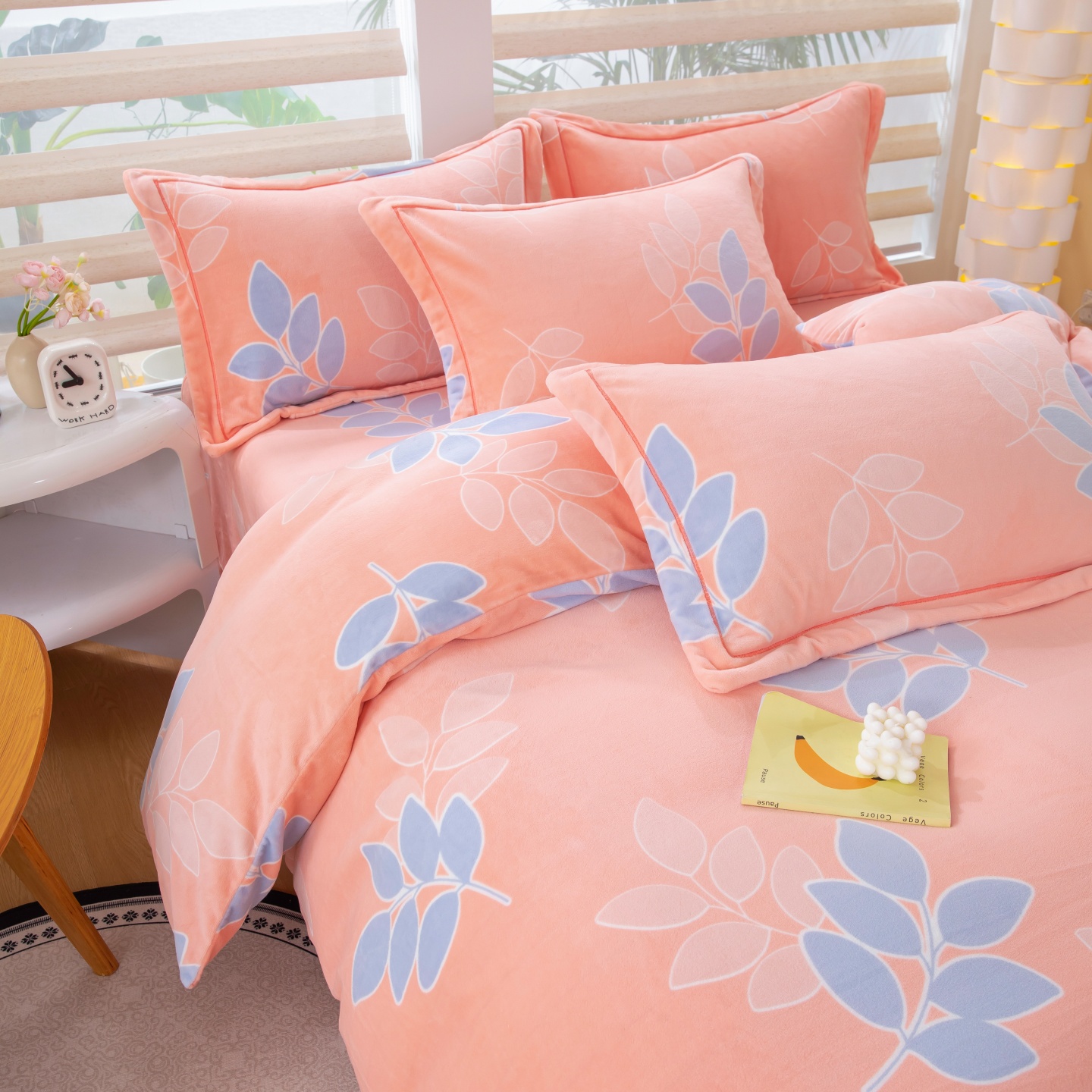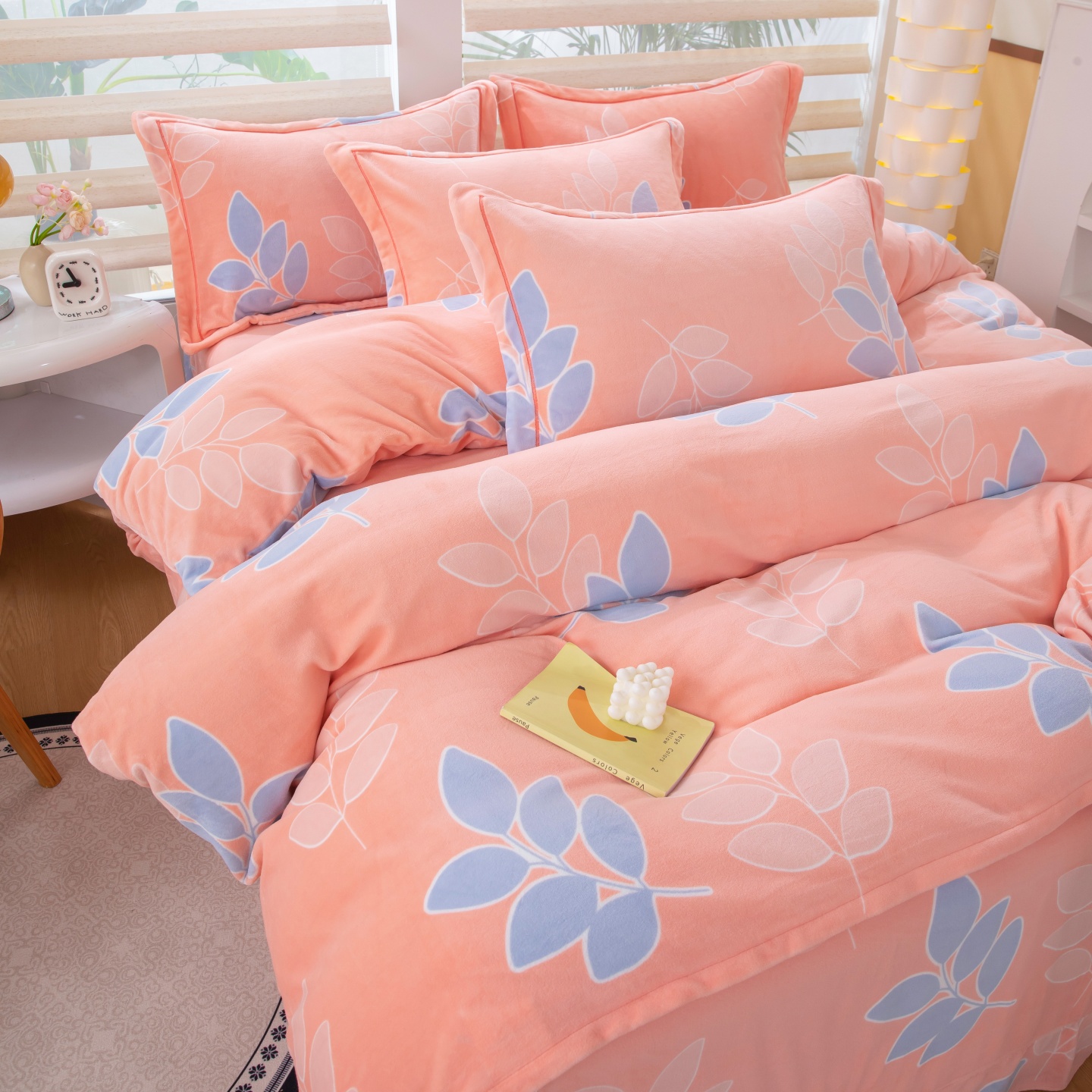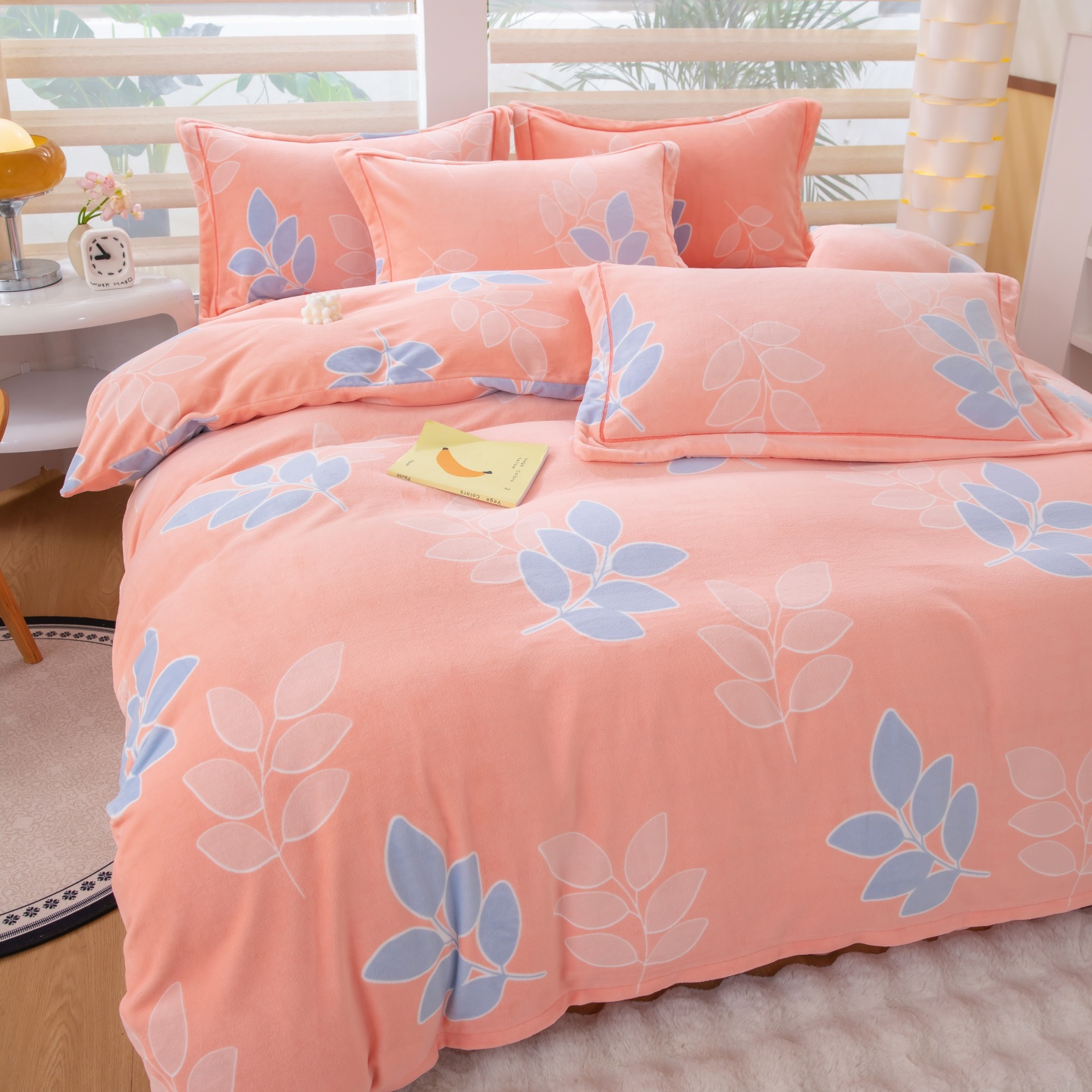 商品名称:优姿家纺 2025新款加厚全消光牛奶绒印花四件套 叶叶飘香