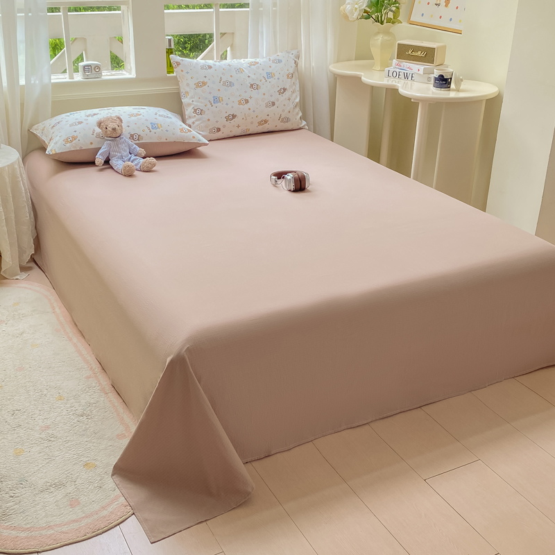 (总)朵朵家纺 2025新款云感提花双层纱纯色单床单被单(可定做尺寸),卡其,果绿,奶黄,浅灰,雾蓝,香芋紫,樱花粉
