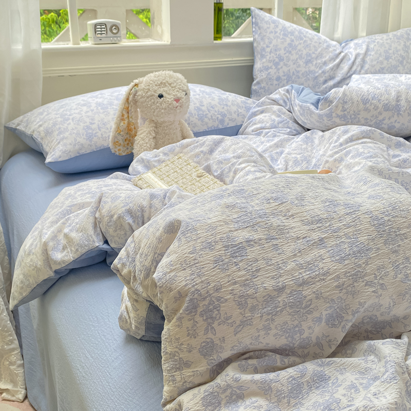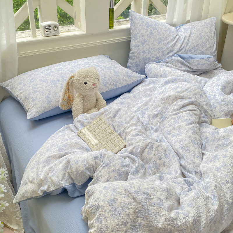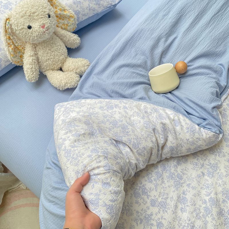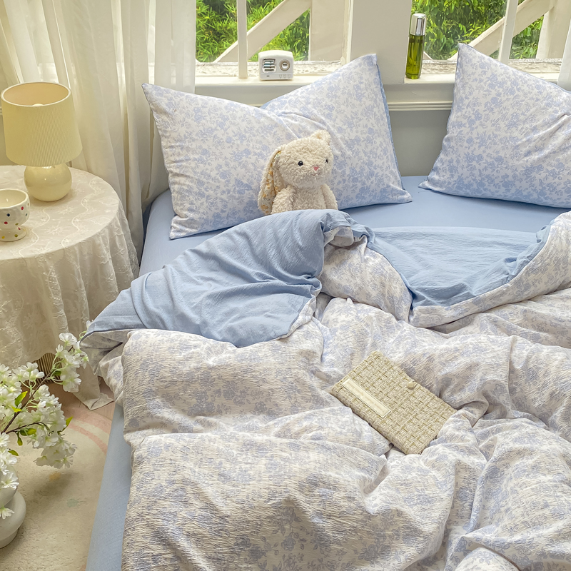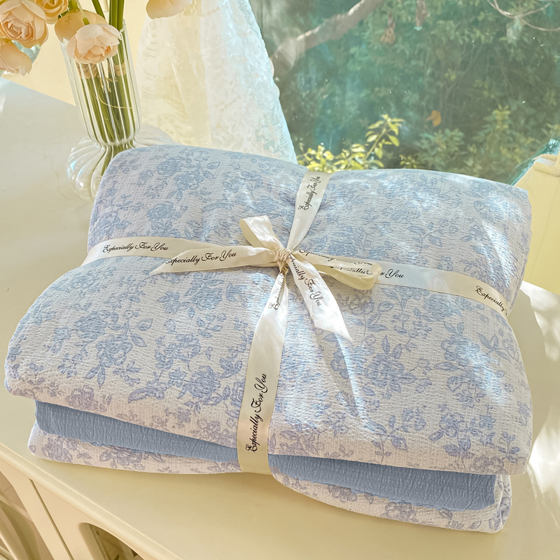 商品名称:朵朵家纺 2025新款云感提花双层纱印花单品被套 蓝色花园