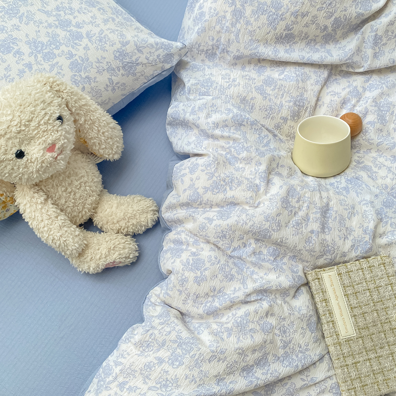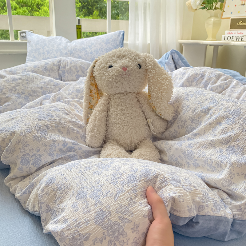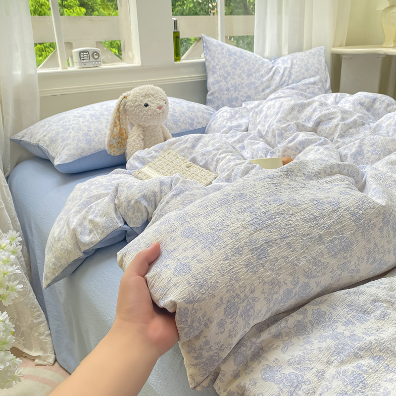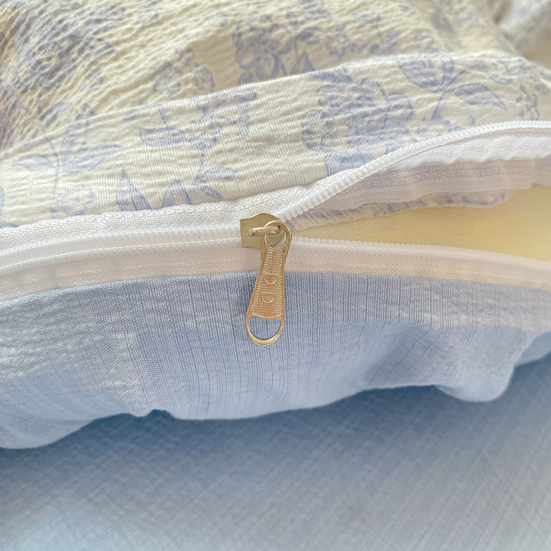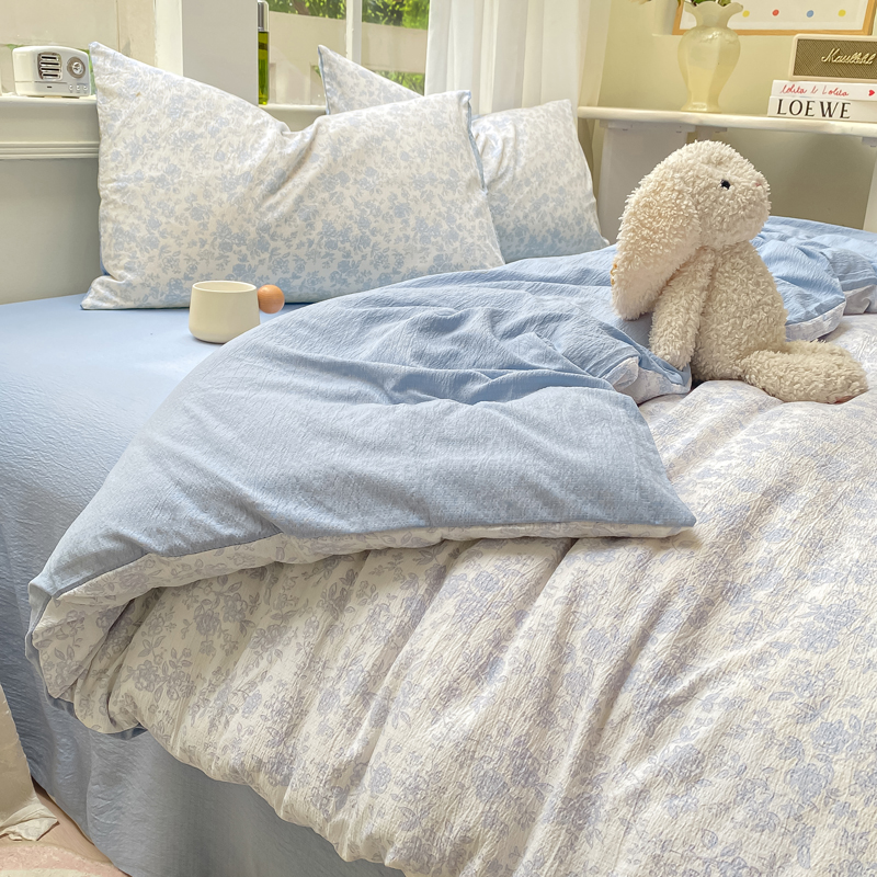 商品名称:朵朵家纺 2025新款云感提花双层纱印花单品被套 蓝色花园