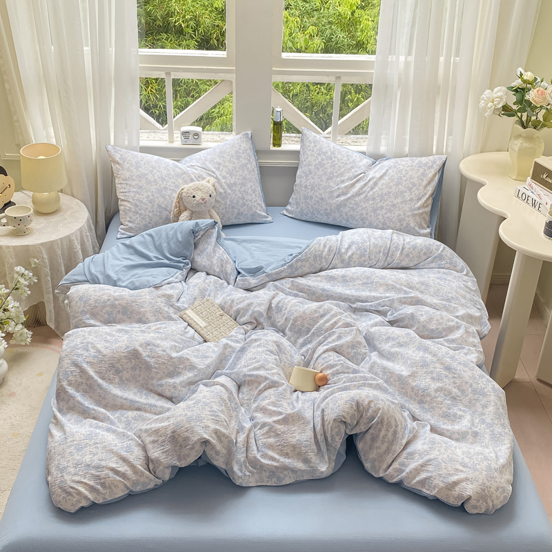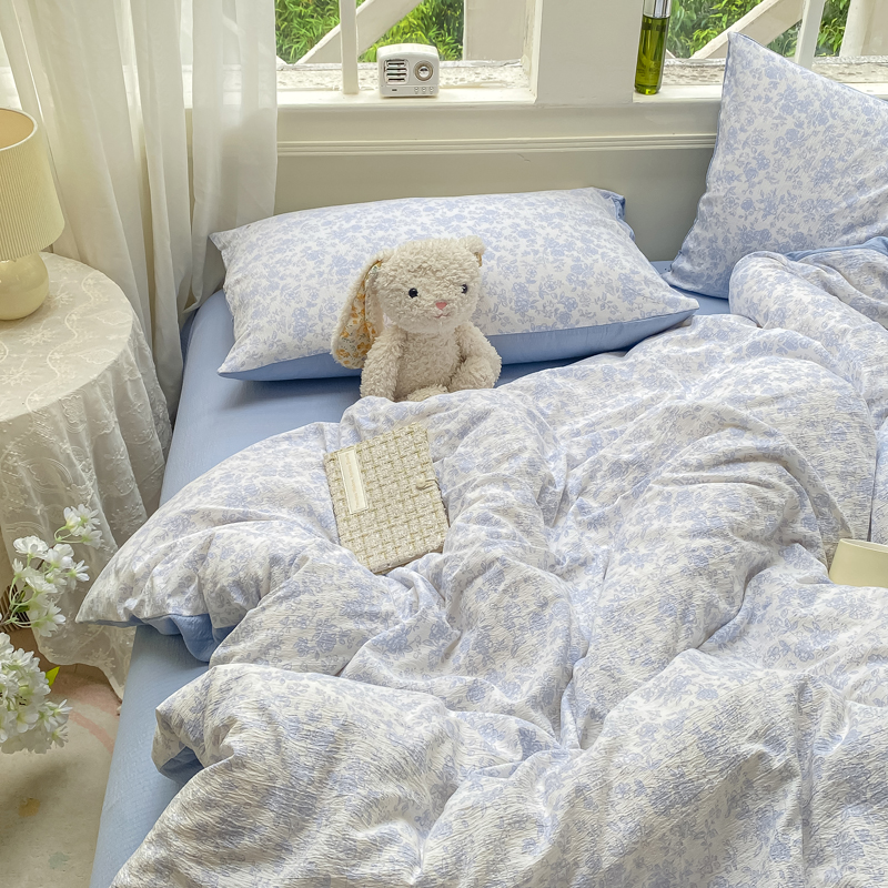 朵朵家纺 2025新款云感提花双层纱印花单品被套 蓝色花园