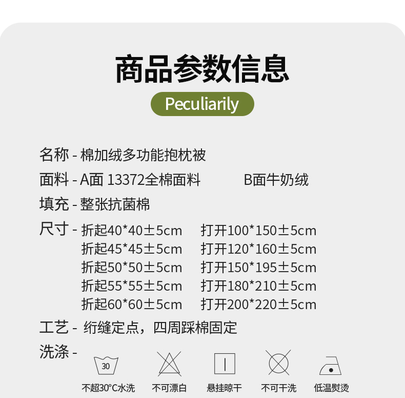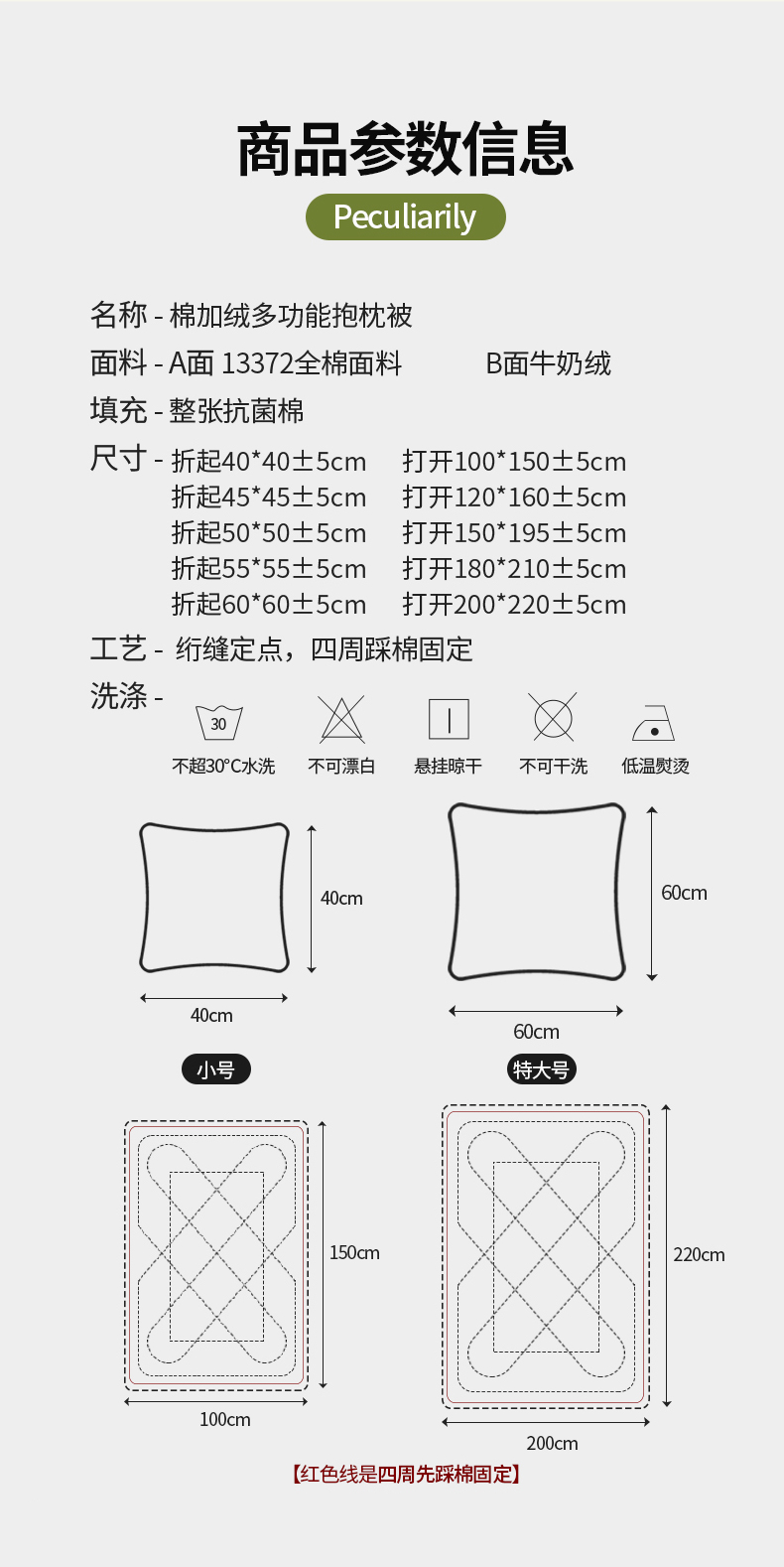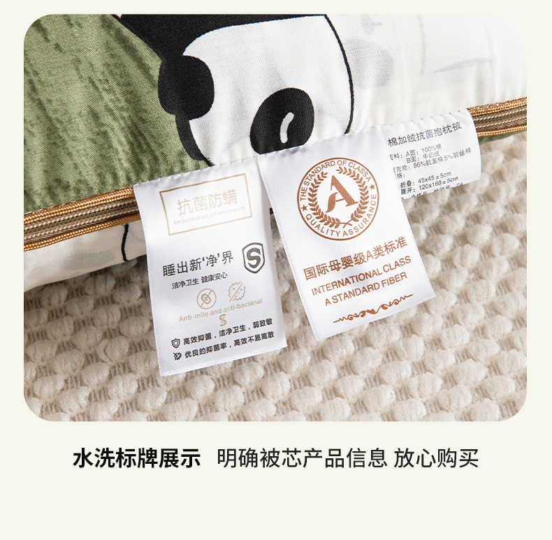 商品名称:照世家纺 2025新款A类棉加绒抗菌抱枕被系列 (控价:不能低于以下:小79,中号99,大120,加大140,超大160;低于零售价的链接,一经发现直接投诉下架,感谢大家的支持) 海盐薄荷
