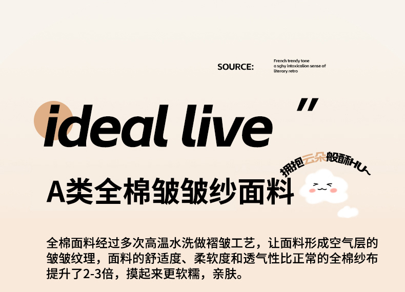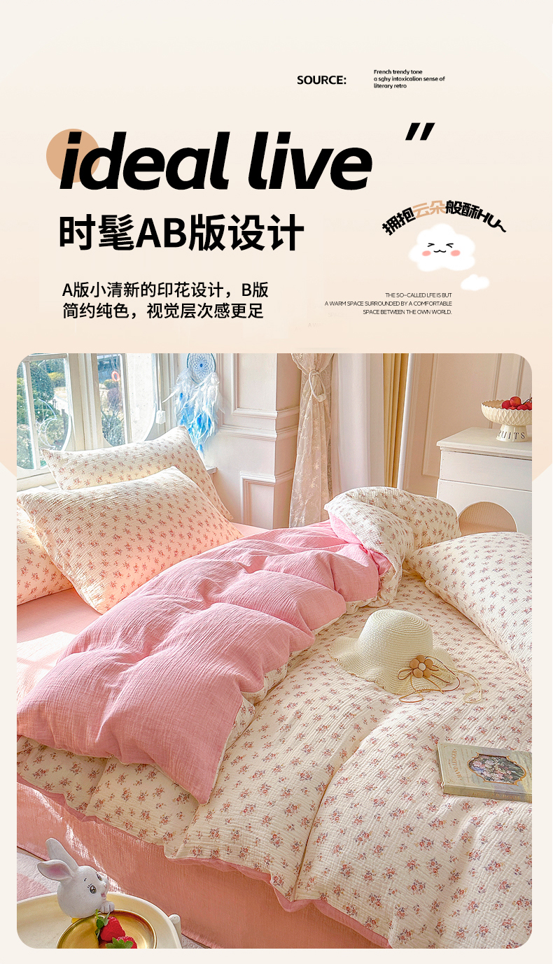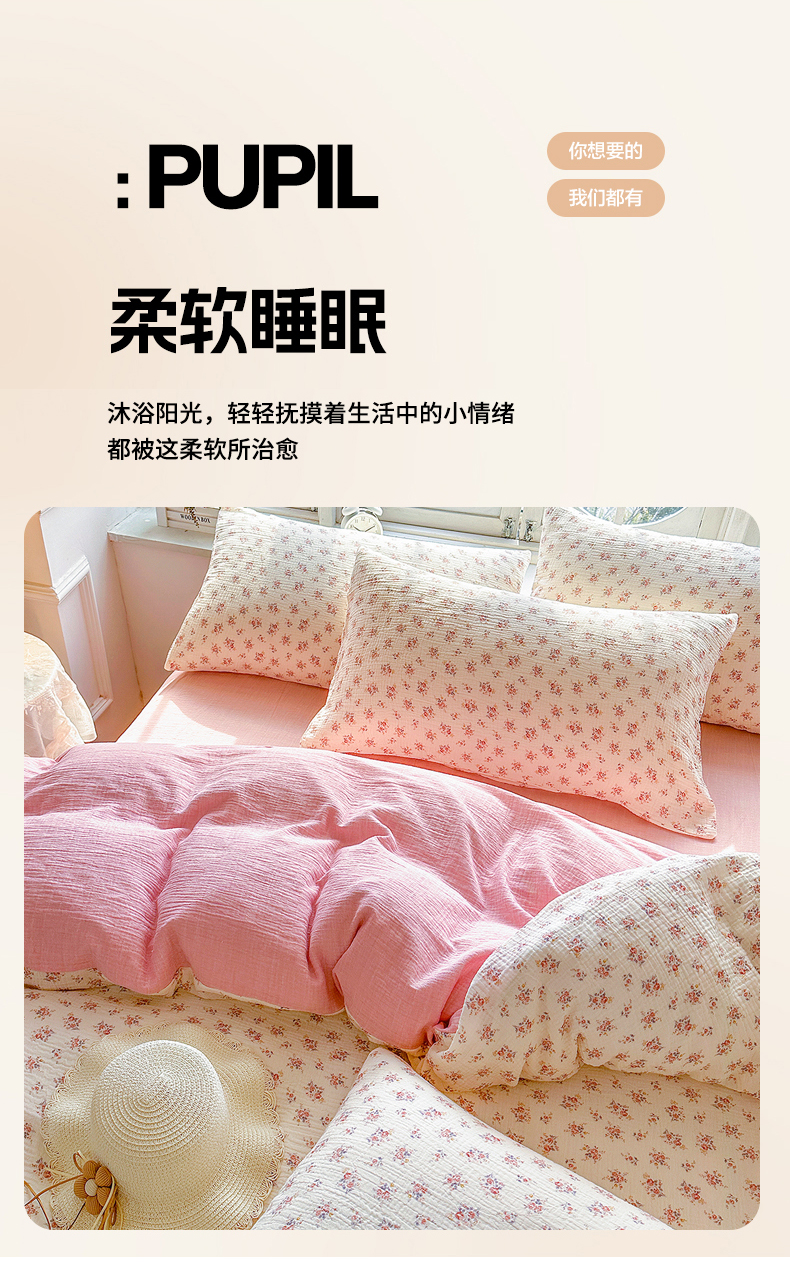 商品名称:木楌家居 2025春夏新品全棉A类皱皱纱印花四件套 悠然