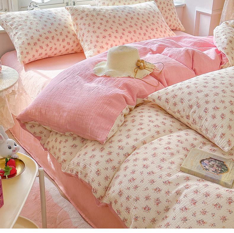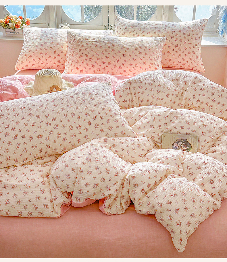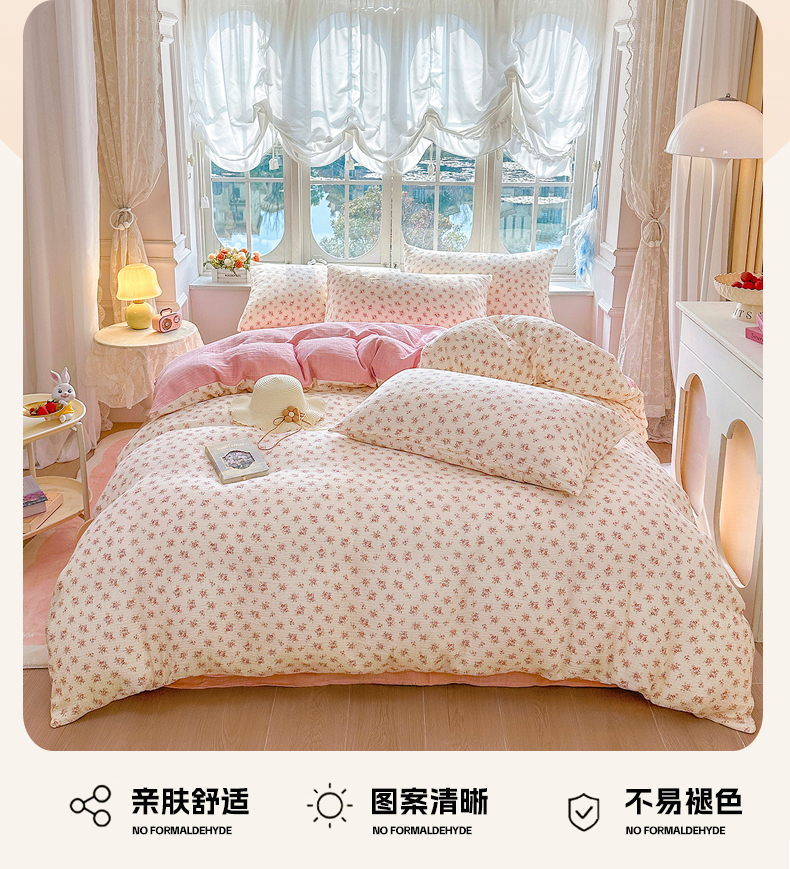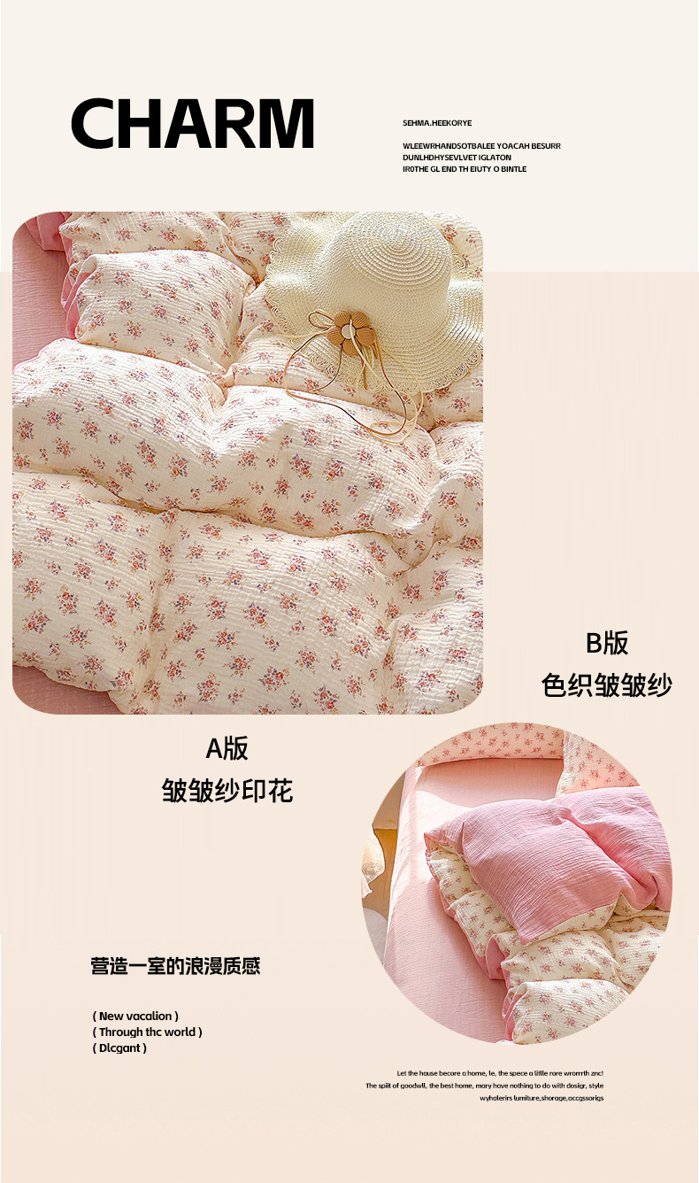 木楌家居 2025春夏新品全棉A类皱皱纱印花四件套 悠然