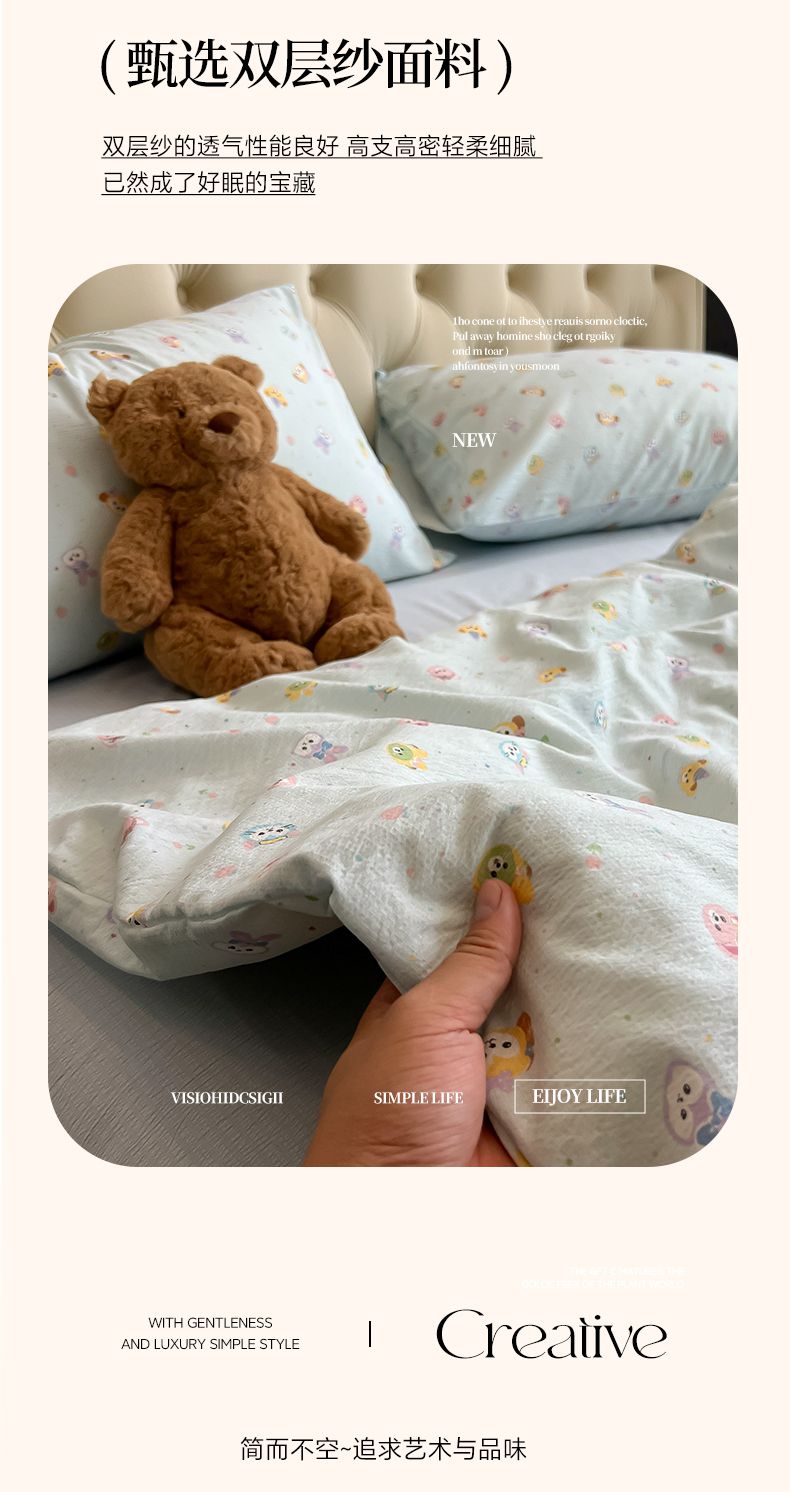 当前位置: 91家纺网 > 商品网购 > 床品套件 > 四件套 > 双层纱四件套 > 韩巢家纺 2025新款双层纱床上用品四件套热销款超柔学生宿舍床单被套三件套 绒毛摇滚