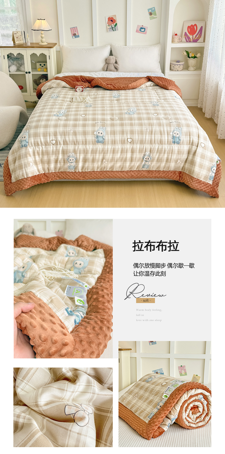(总)宜梦家居 2025新款獭兔绒三层夹棉加厚豆豆棉被子被芯,抱抱熊,蛋糕猫,蝴蝶,花草狗,卡皮巴拉,蓝狗,蓝色动物,美乐蒂,奶牛,南瓜,星月,熊猫,郁金香,紫花