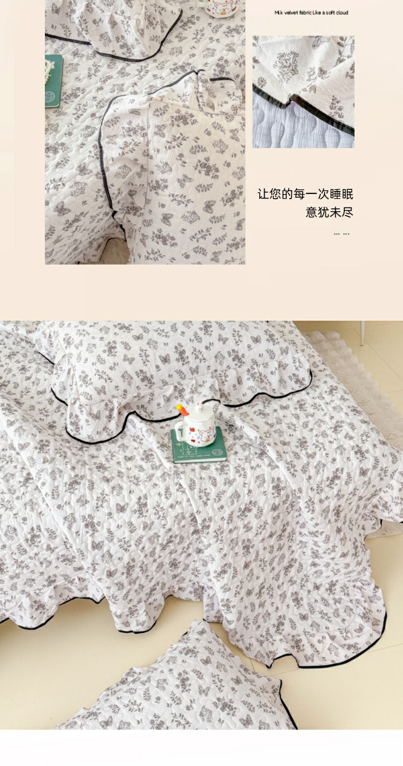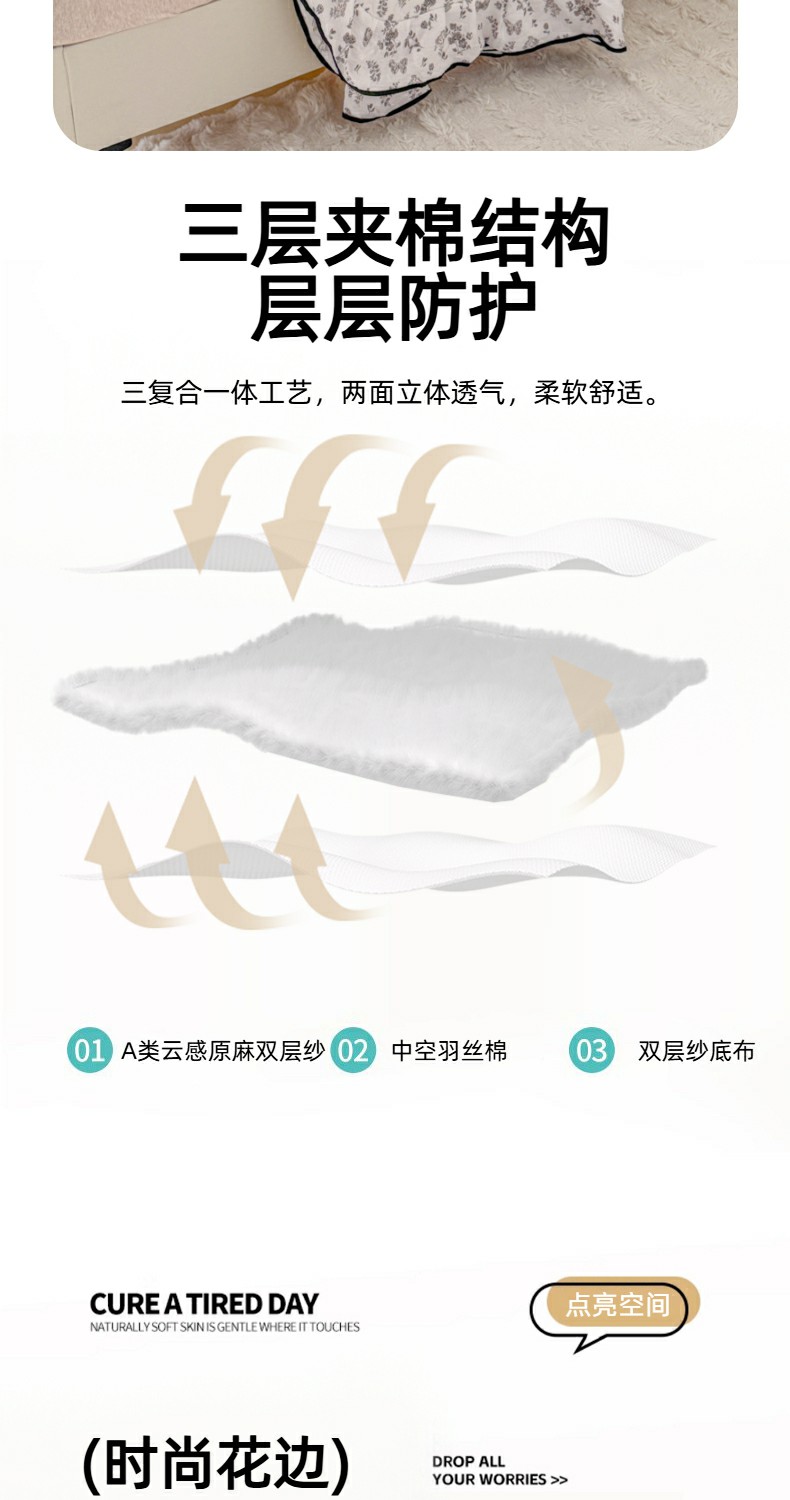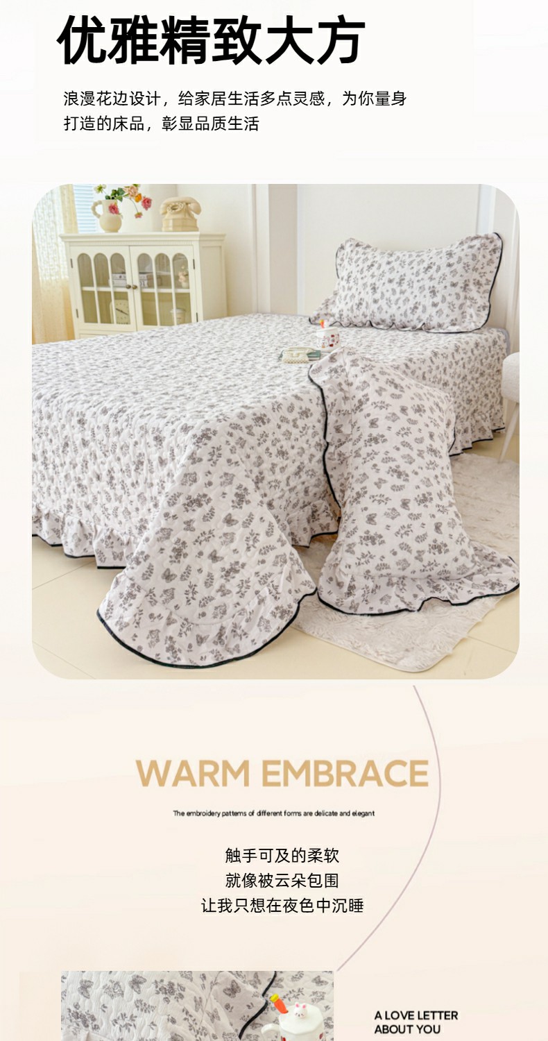 • 91家纺网 家纺一手货源 找家纺 999家纺 2025秋冬新款A类云感原麻双层纱床盖三件套四季通用炕盖夹棉床单床褥(提供买家秀) 浅画【花边款】