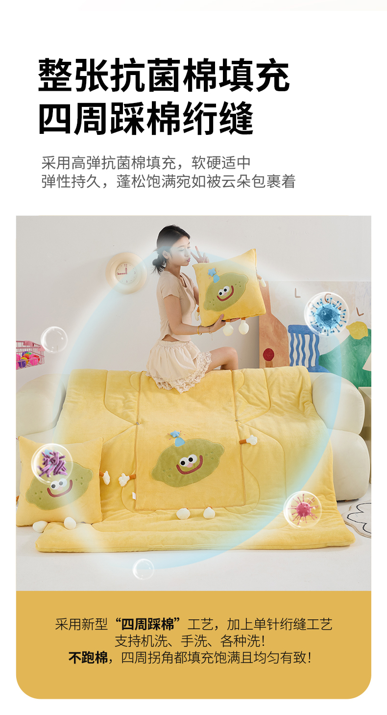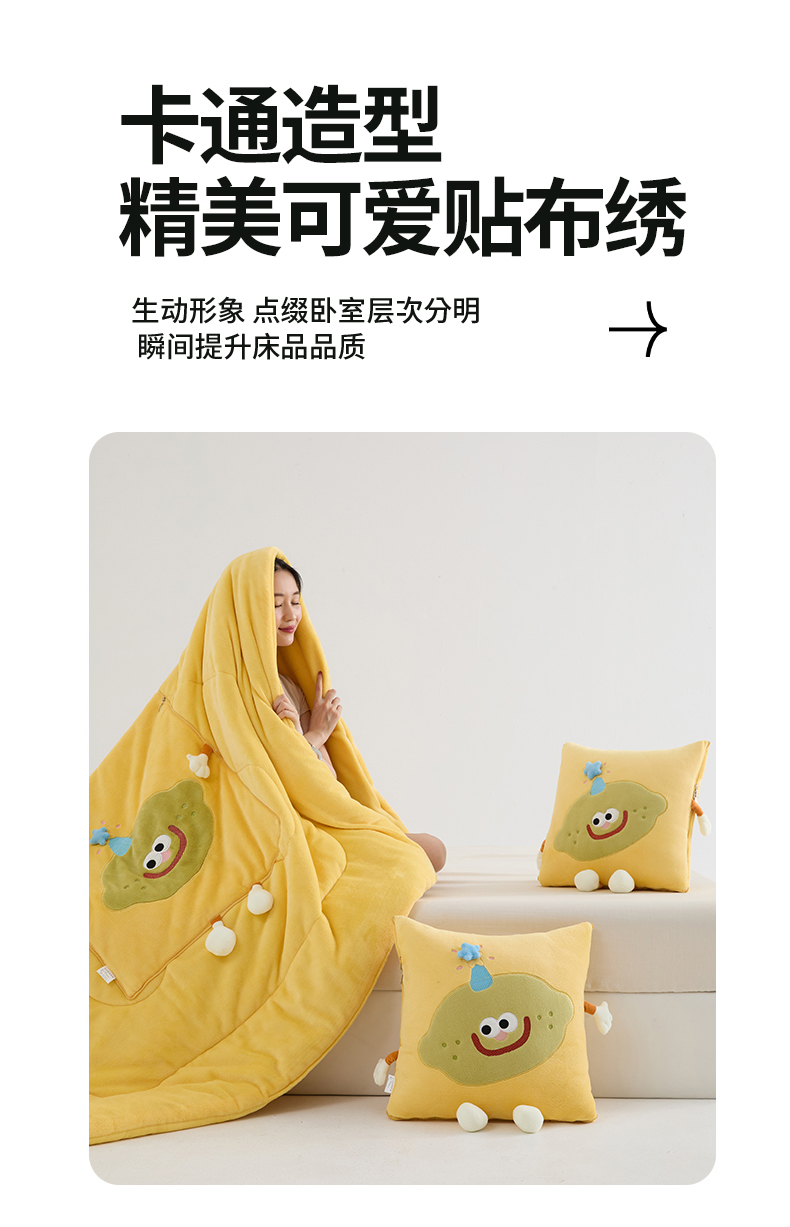 商品名称:照世家纺 2025新款牛奶绒抗菌棉mango款抱枕被 秋蓝