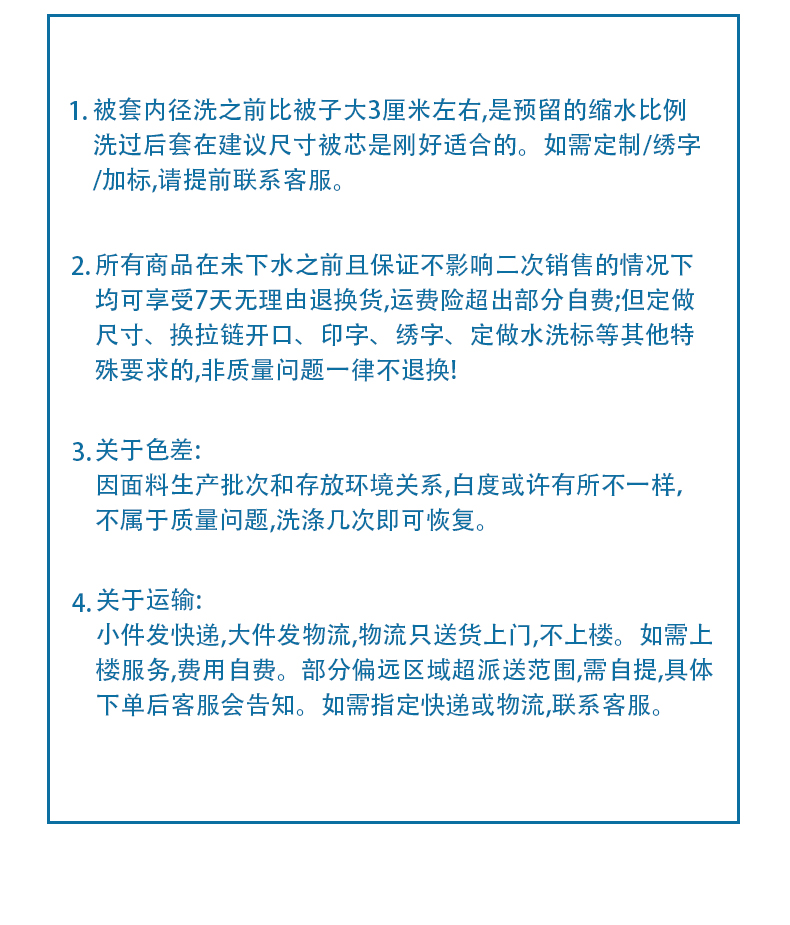 | 非质量问题、不影响二次销售,在30天内支持退换货。 | |