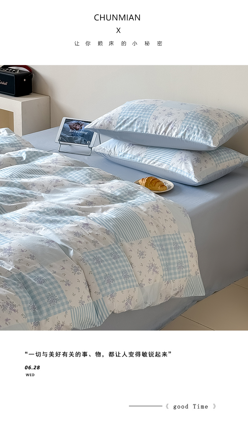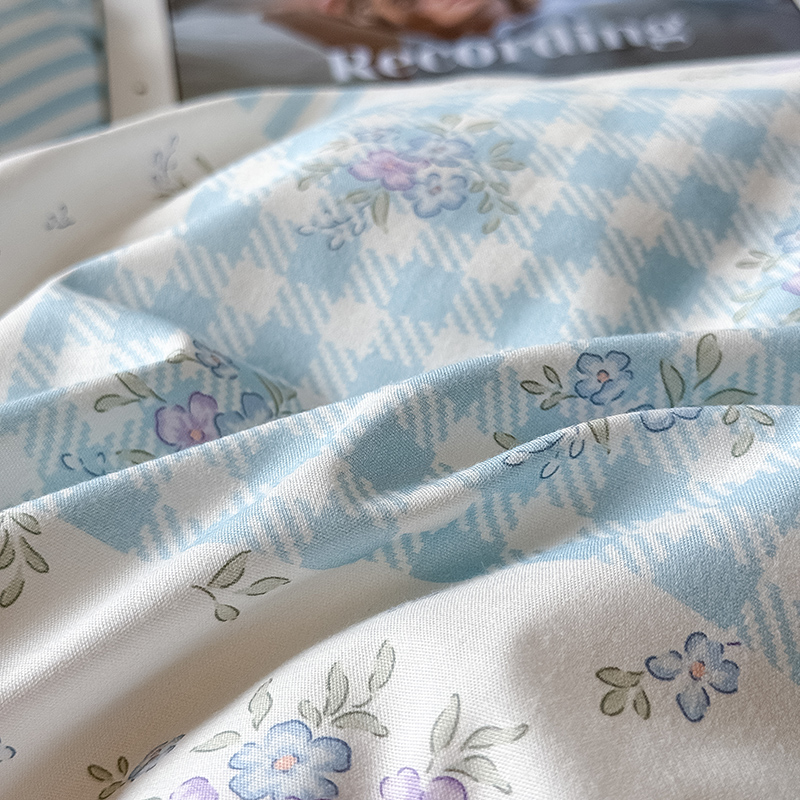 商品名称:Mr.pig猪先生水洗棉 2025新款小清新全棉四件套 碎花格-蓝