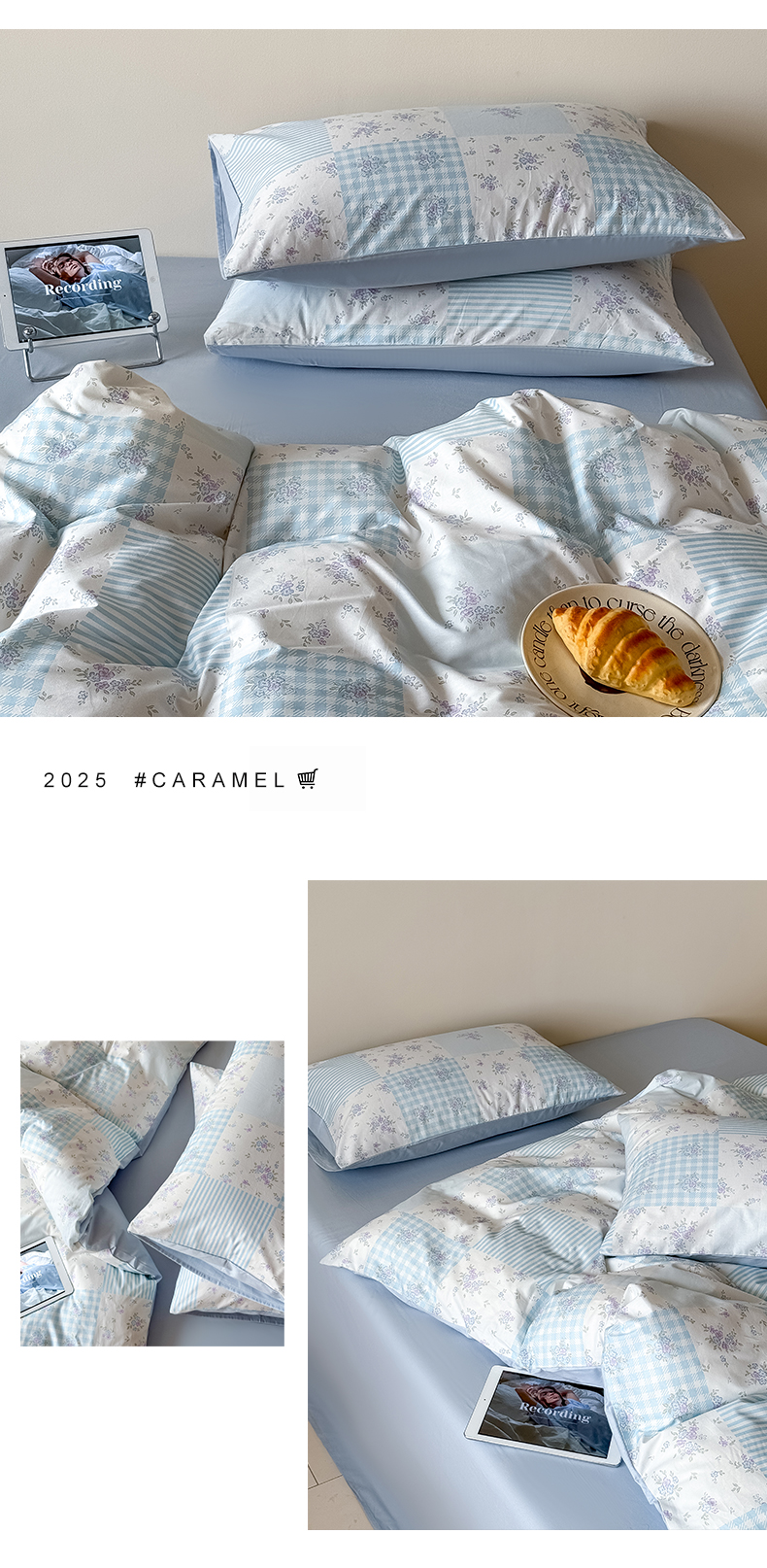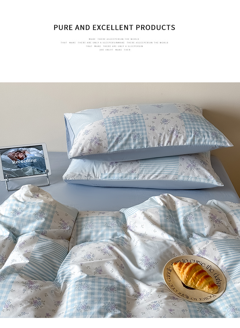 Mr.pig猪先生水洗棉 2025新款小清新全棉四件套 碎花格-蓝