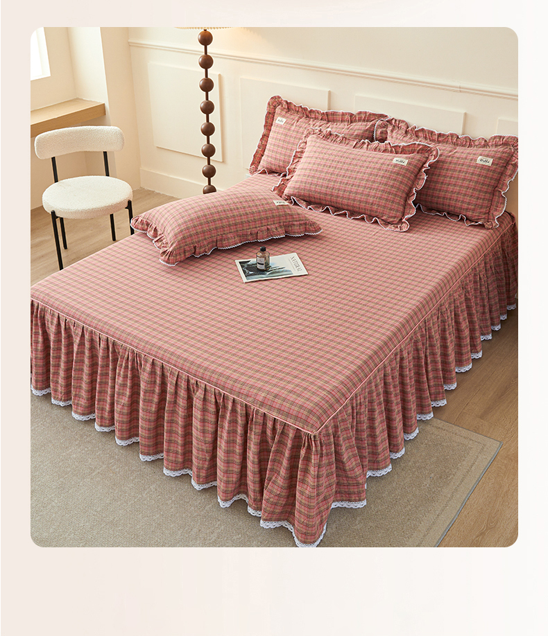 (总)缦彩 2025新款纯棉水洗棉床裙床罩单件全棉防滑防尘保护套床单三件套,艾米-粉,艾米-咖,艾米-兰,多芬桔,扶摇粉,欧风粉,品格-绿,奇兰灰,深情桔