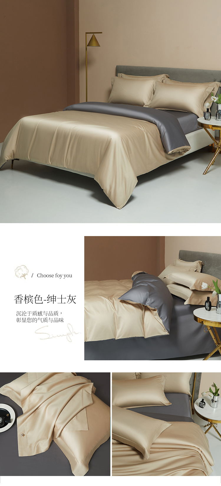 当前位置: 91家纺网 > 商品网购 > 床品套件 > 四件套 > 长绒棉四件套 > 柔觉家纺 2025新款100支长绒棉A类纯色双拼素色全棉四件套 浅银灰&香槟金