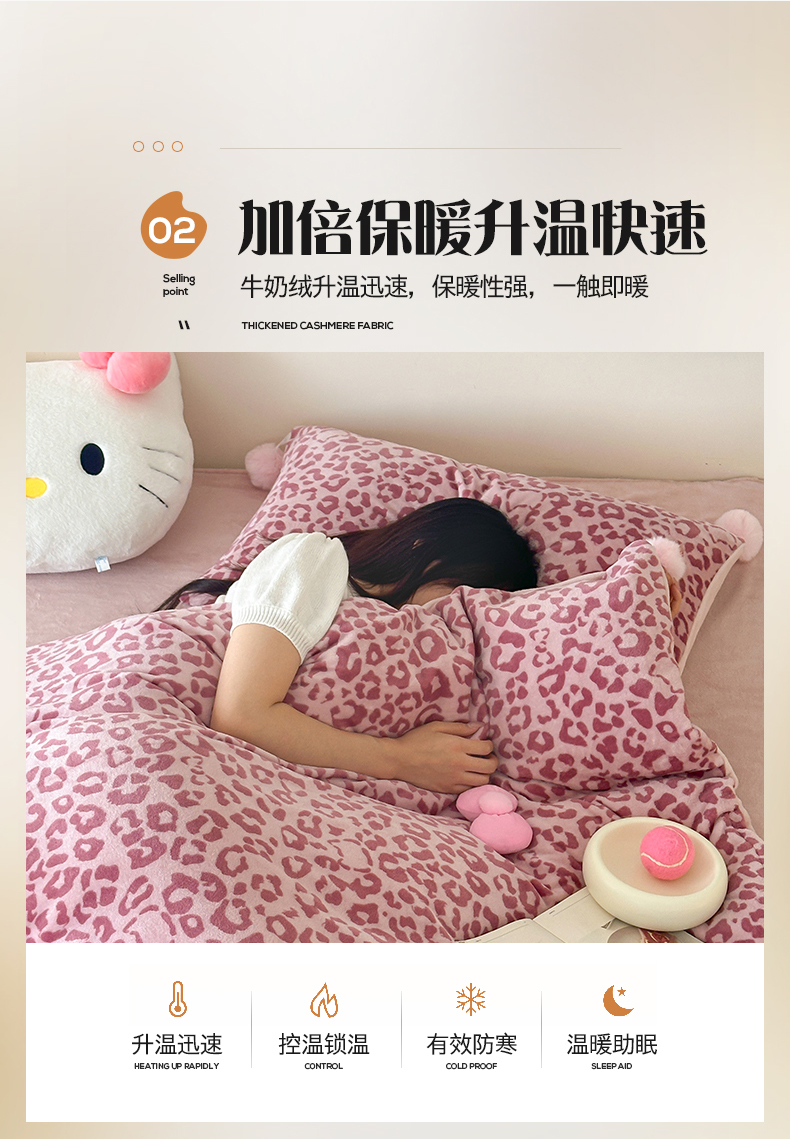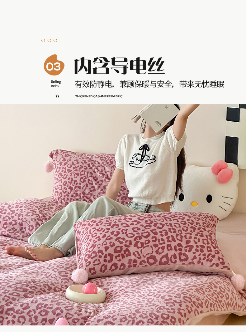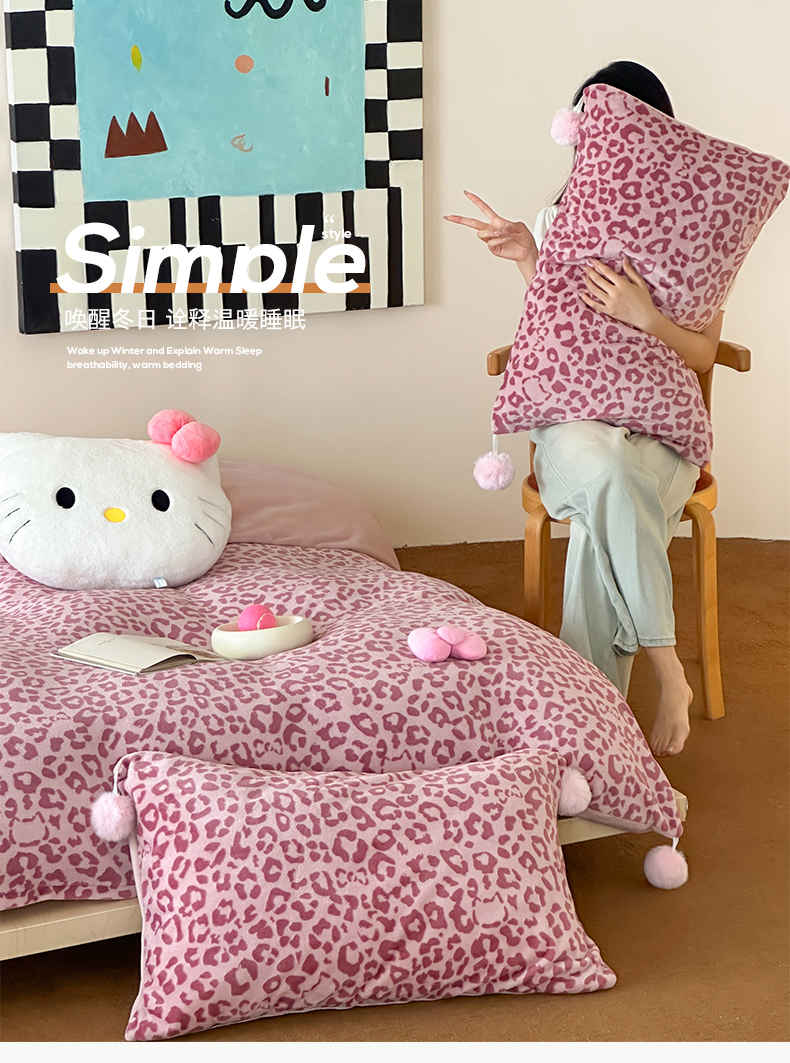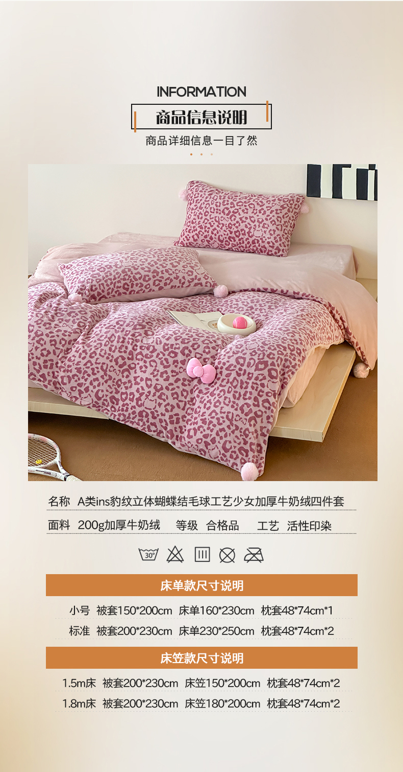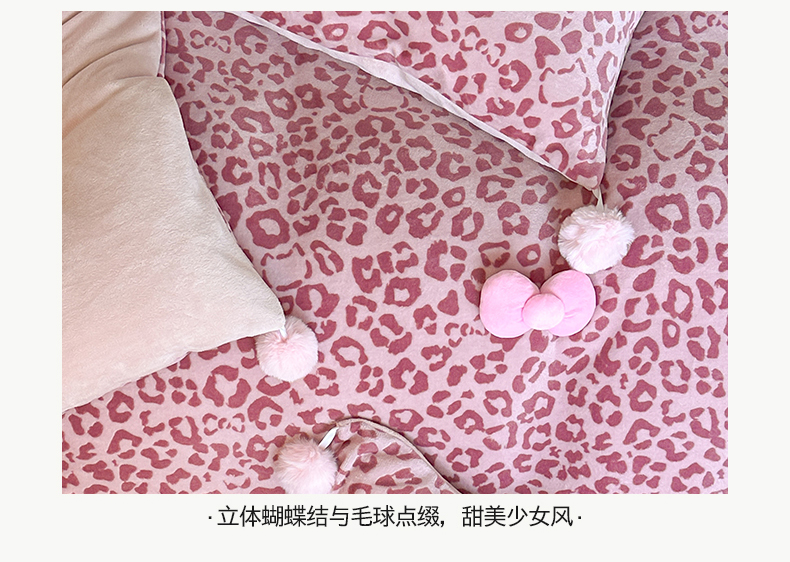 当前位置: 91家纺网 > 商品网购 > 床品套件 > 四件套 > 牛奶绒四件套 > 桃子家居 2025新款A类ins豹纹立体蝴蝶结毛球工艺少女加厚牛奶绒四件套 绒毛球-豹纹蝴蝶结粉