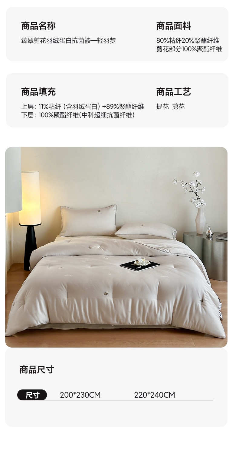 商品名称:一加一 2025新款臻翠剪花蛋白抗菌被子被芯-轻羽梦 星空灰