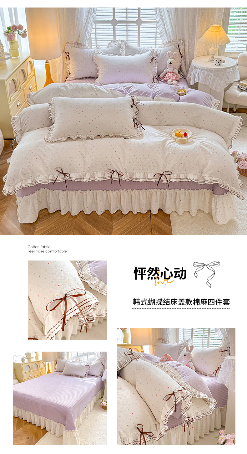 商品名称:韩约家纺 2025新款韩约1韩式蝴蝶结床盖款棉麻四件套 美布多