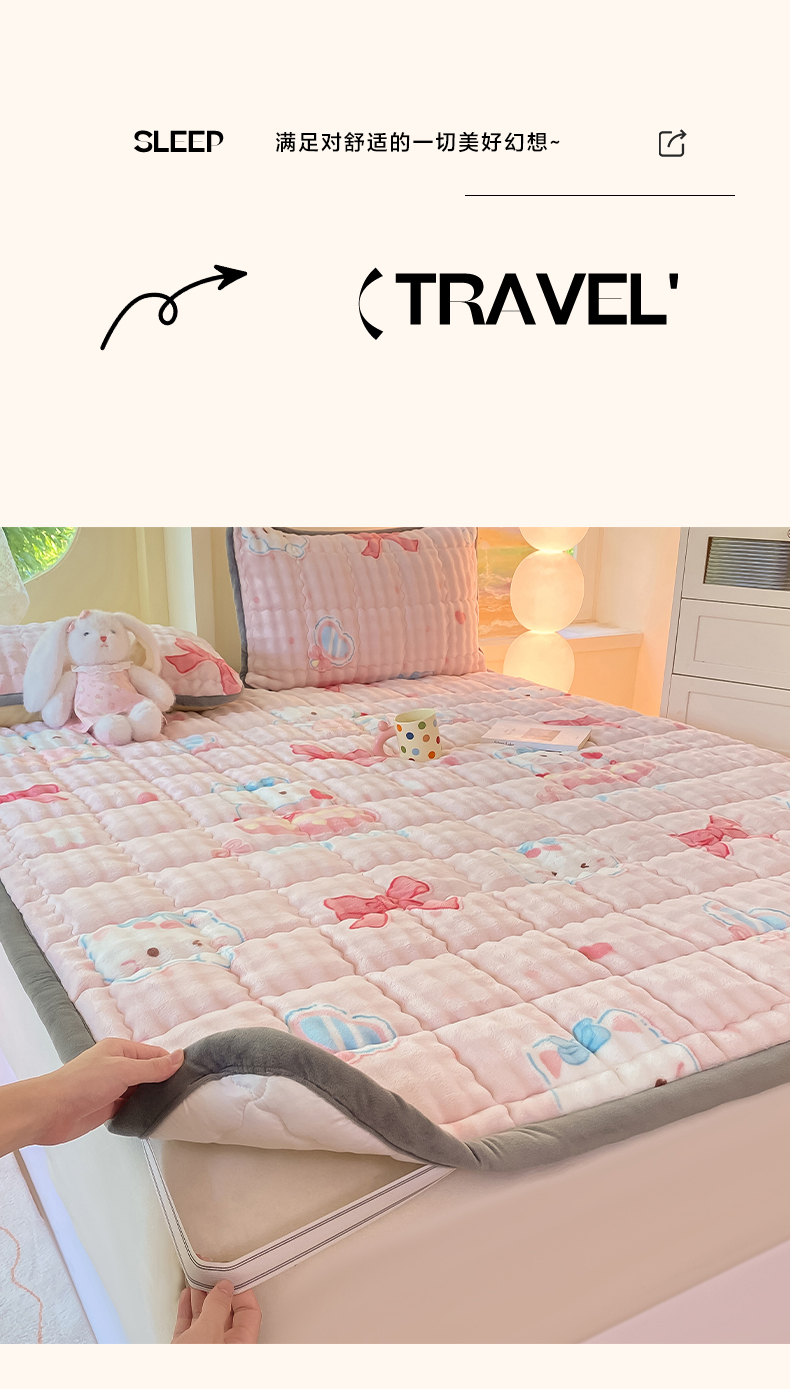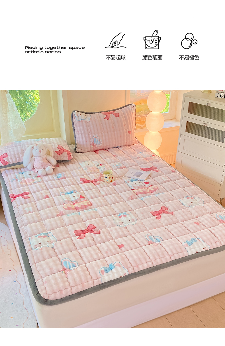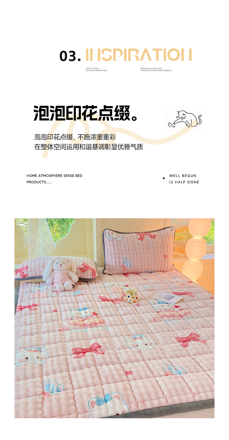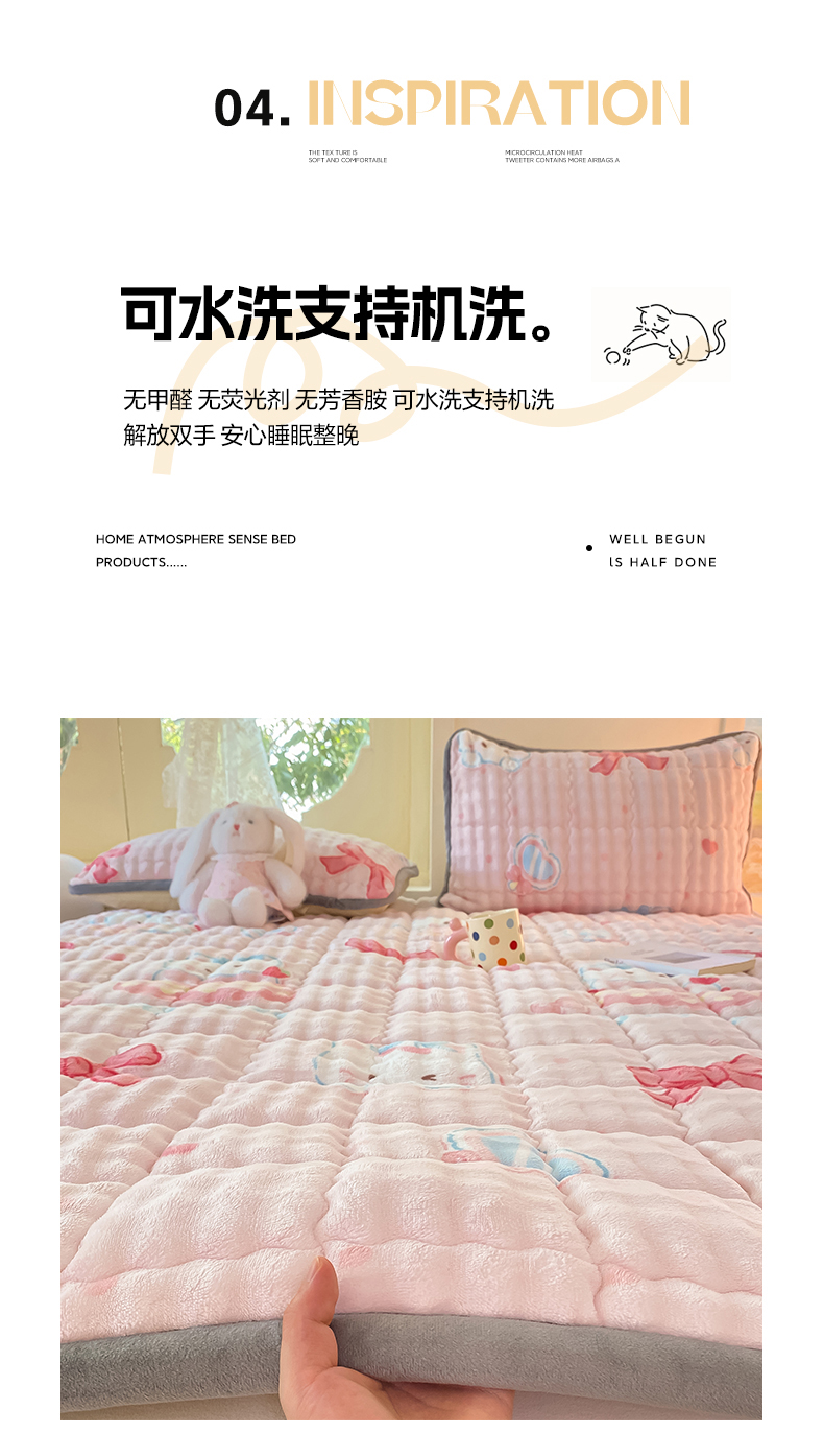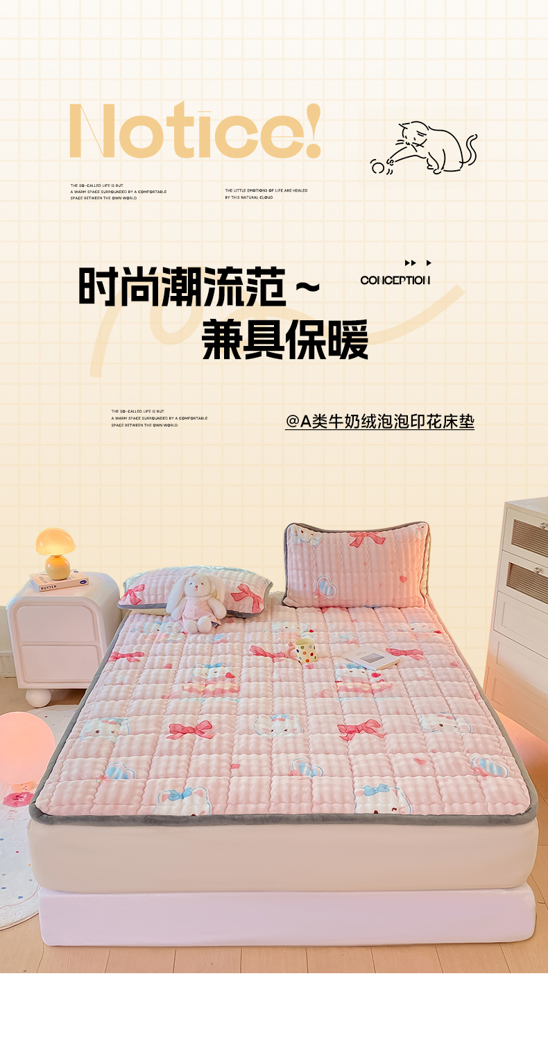 • 91家纺网 家纺一手货源 找家纺 眠势力 2025新款牛奶绒泡泡床垫加绒仿兔毛绒床褥子秋冬保暖珊瑚绒夹棉床护垫 樱桃猫咪