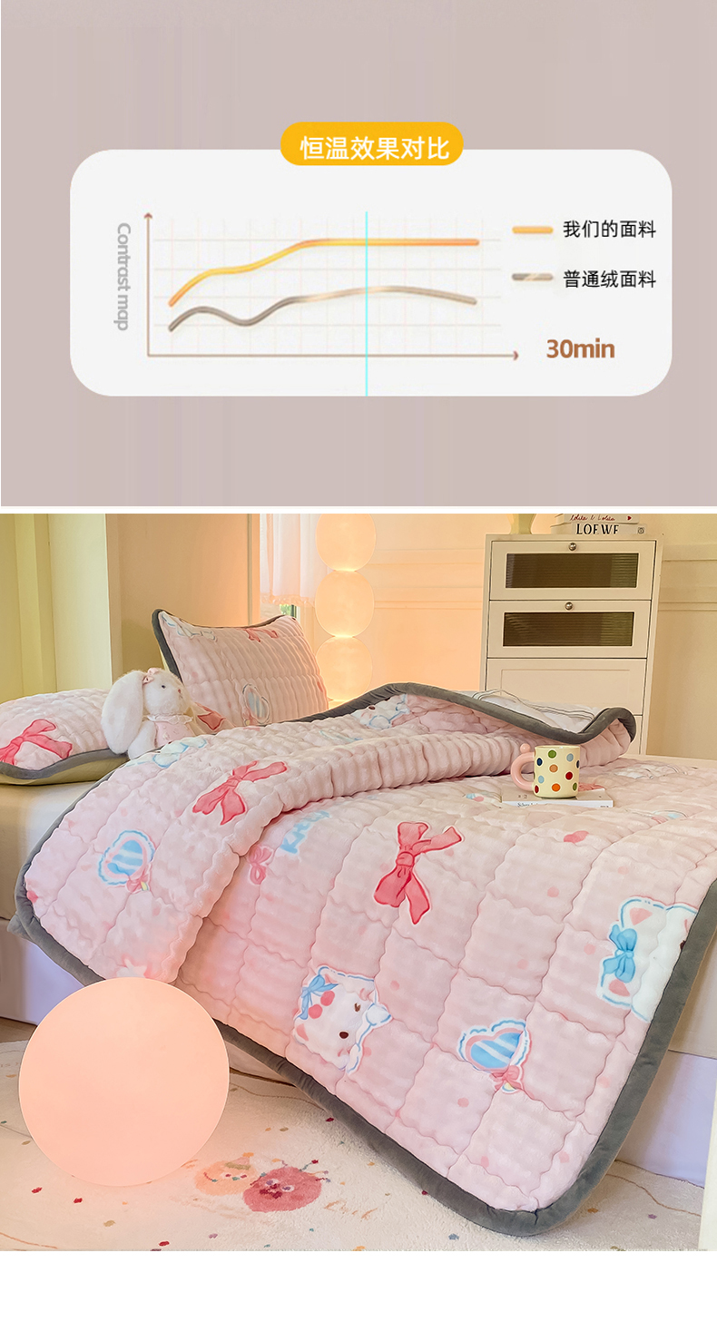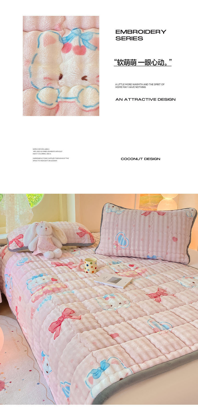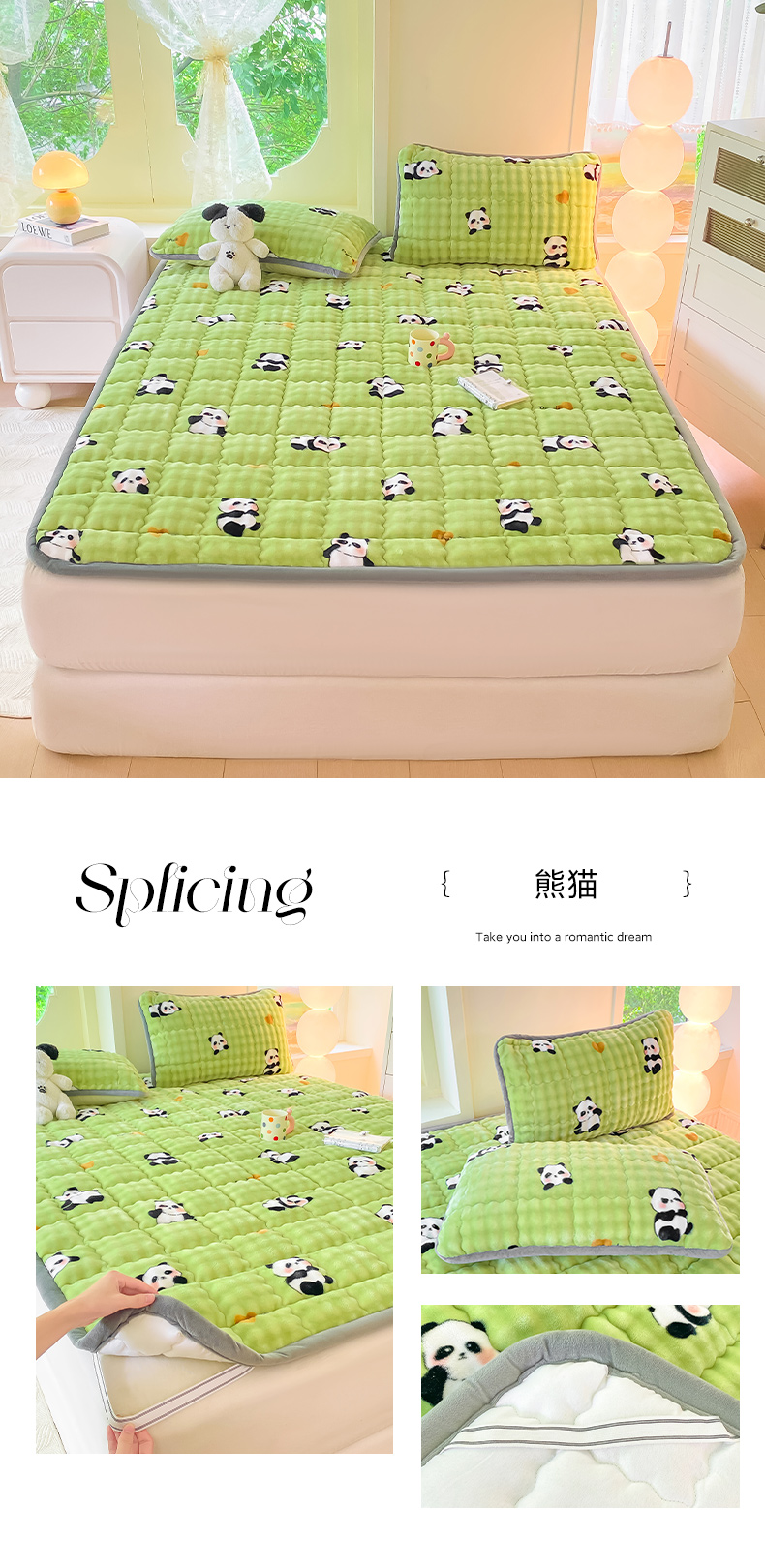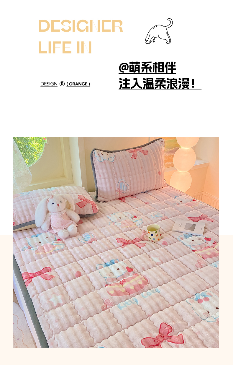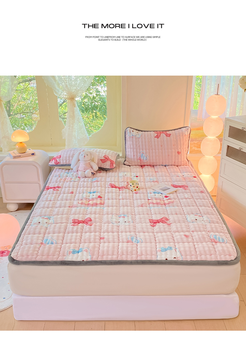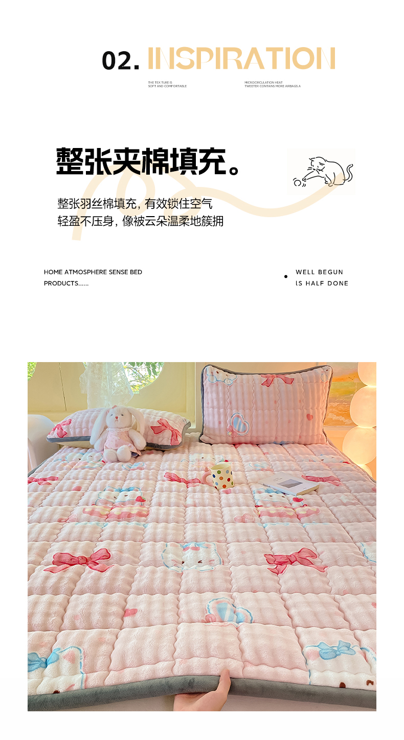 • 91家纺网 家纺一手货源 找家纺 眠势力 2025新款牛奶绒泡泡床垫加绒仿兔毛绒床褥子秋冬保暖珊瑚绒夹棉床护垫 樱桃猫咪