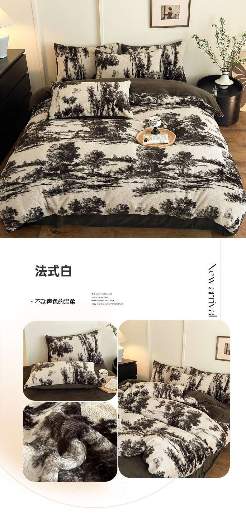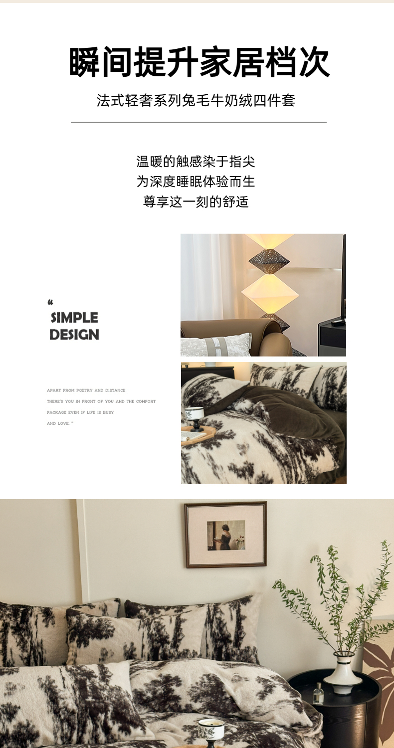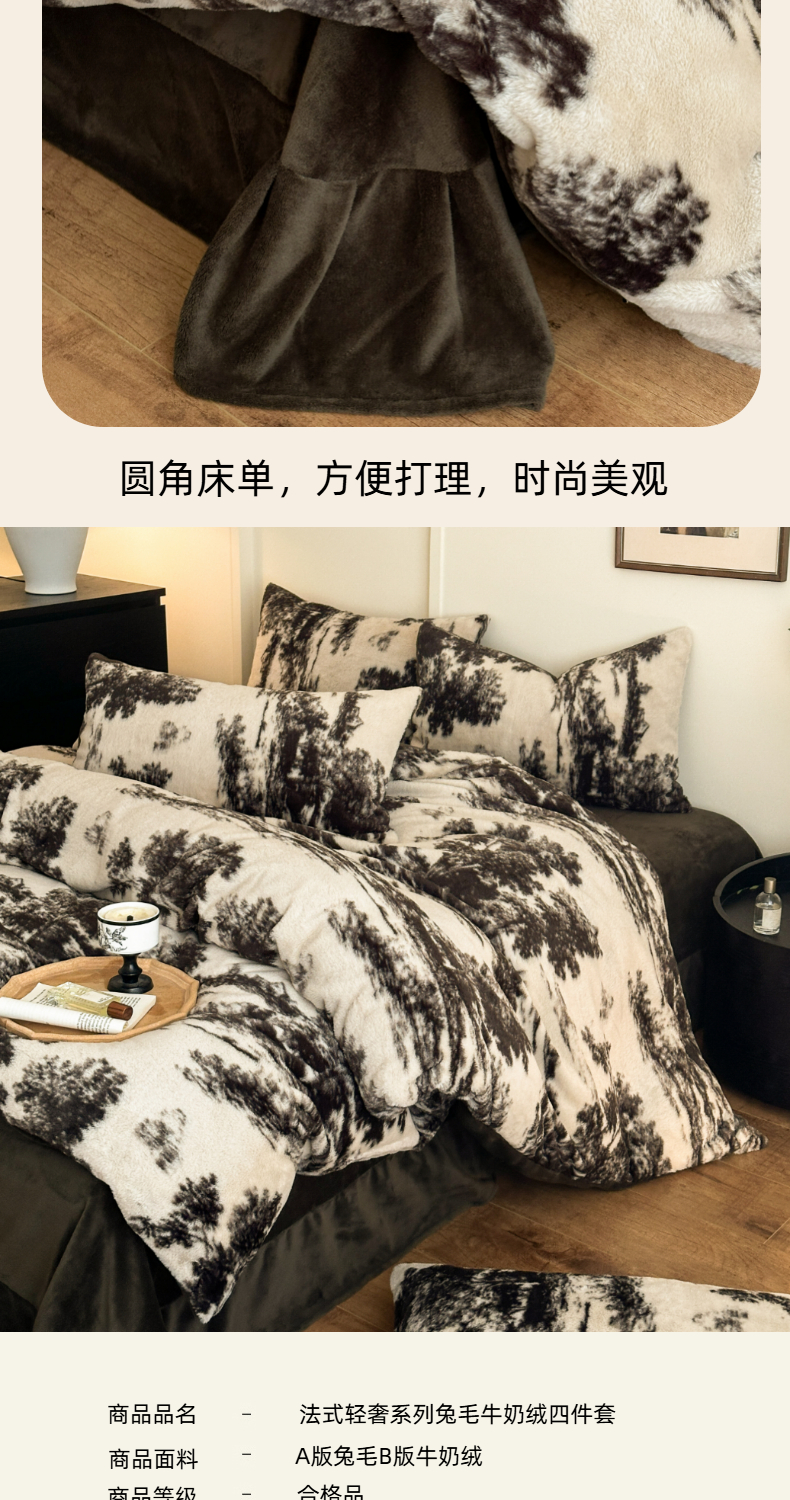 商品名称:十里居 2025新款兔毛印花法式轻奢系列牛奶绒四件套 法式白