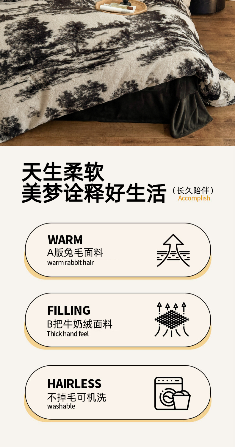十里居 2025新款兔毛印花法式轻奢系列牛奶绒四件套 法式白