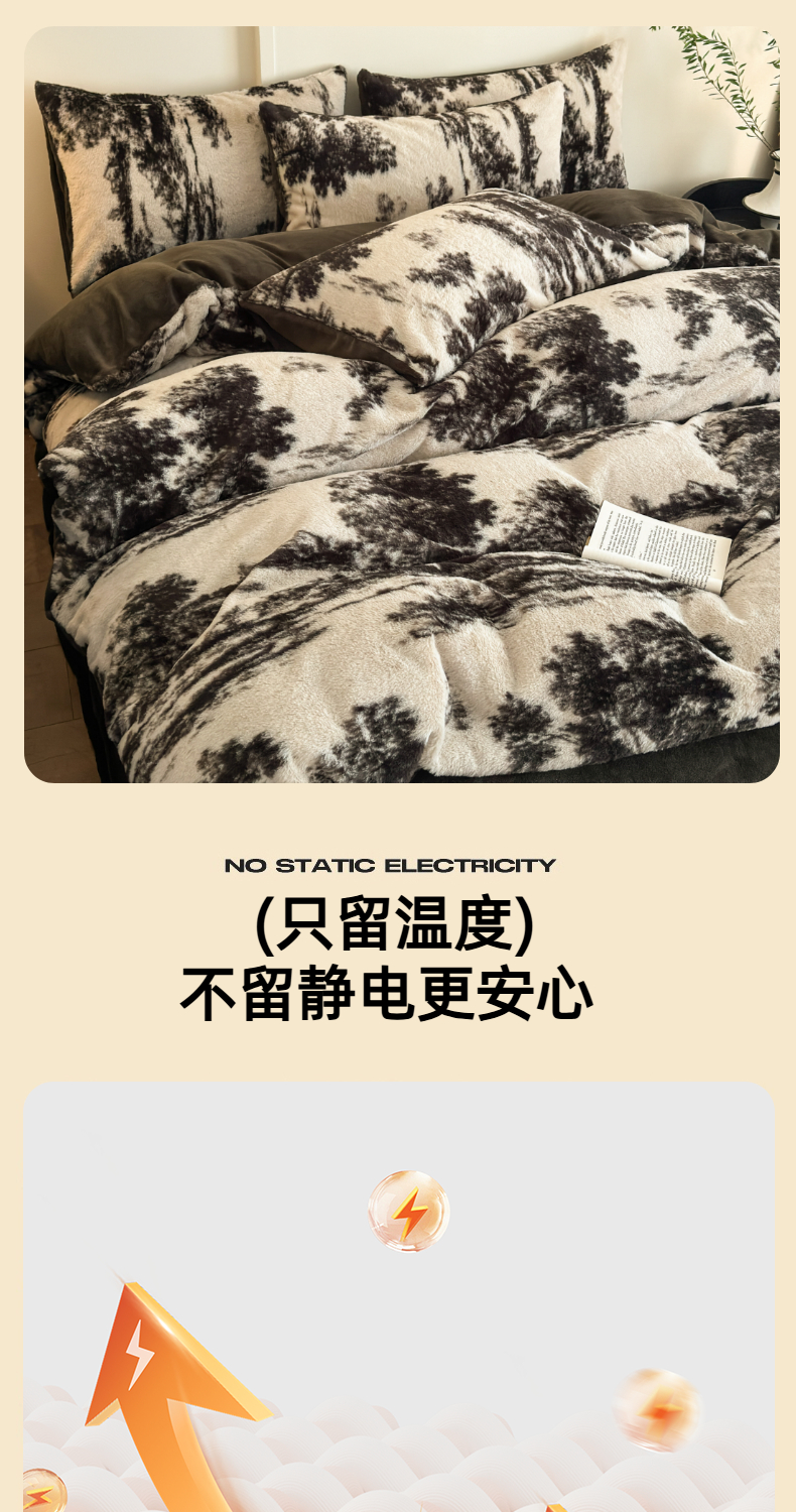 (总)十里居 2025新款兔毛印花法式轻奢系列牛奶绒四件套,豹纹蝴蝶,蝶舞咖,法式白,花海,花影灰,玫瑰